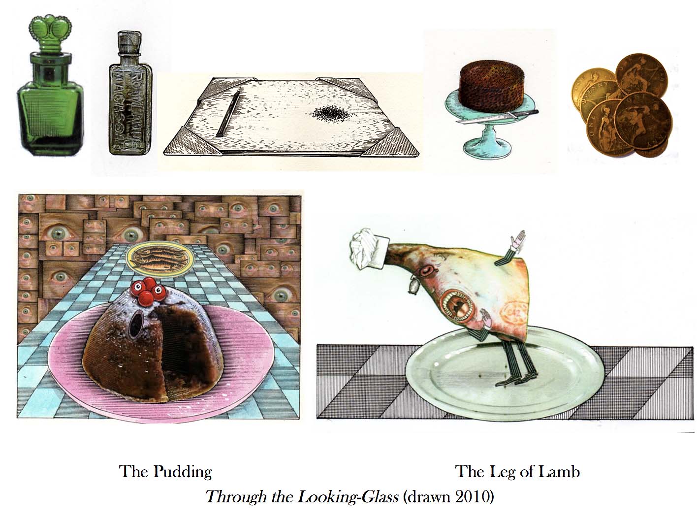 The pudding shouted out to Alice ‘What impertinence’ it was when Alice cut a slice out of it.