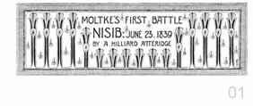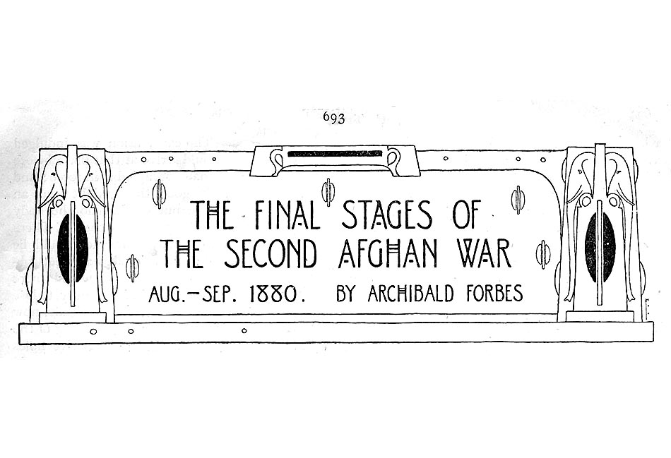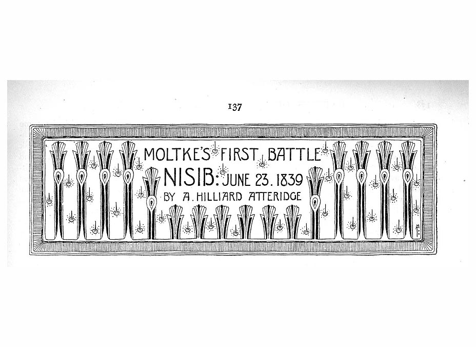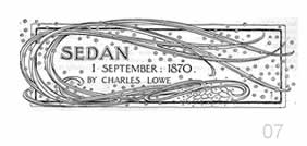 These headpieces to chapters are early examples of Morris' design work that have not been recorded. Each occupies the same sized space on the page. The book is an ugly and otherwise undistinguished publication (perhaps a part publication) where each chapter is a study of a particular battle. The covers and titlepage are lost but I can nevertheless find no date. From the editorial style (for which Morris was not responsible) the publication dates from c1893.