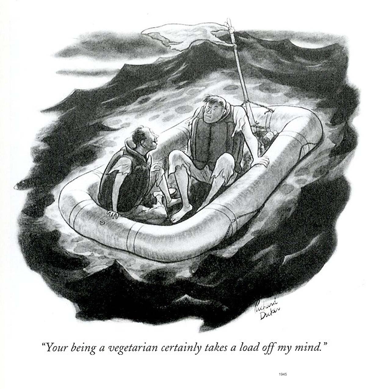 These examples are evidence of the enduring attraction of shipwrecked souls on the desert island, how they had survived the life on a raft and how they will respond to the solitary life without modern amenities. Significantly the survivors are almost unformly pairings of men and women. The reader's imagination is meant to flare with the thought of all moral codes suspended. The island is for pictorial reasons (and the space allocated on the page) often restricted to a small disk of land with a palm tree growing in the middle. There is much fun to be had drawing ragged trousers and skimpy revealing shifts for the ladies. Faced with such austerities, the horizon is often given the focus as the source of deliverence, or the arrival of horny sailors. The whole concept is one of paring the pictorial propositions down to the minimum, knowing that the discerning audience will not demand verisimilitude. The sexual frisson is usually quite enough to be getting along with. How to draw receptivity? |