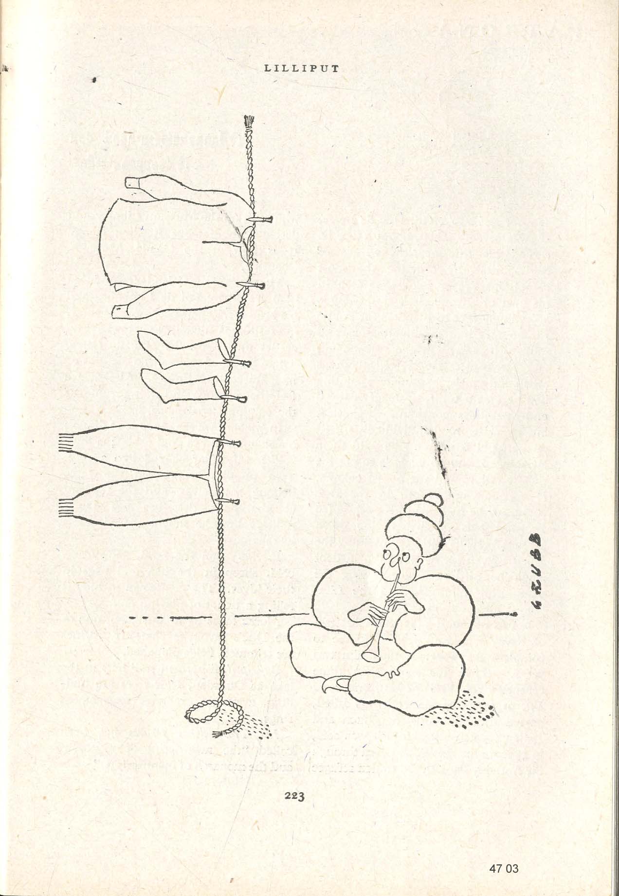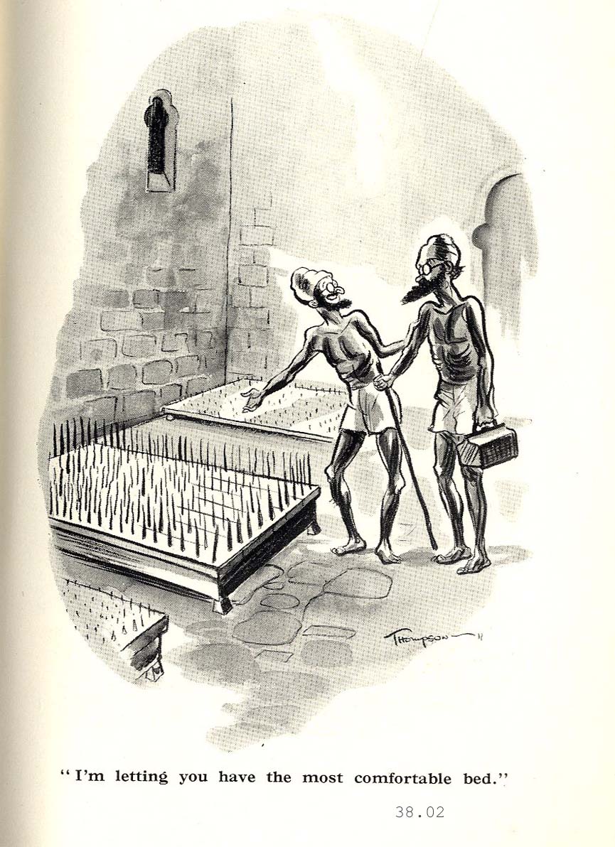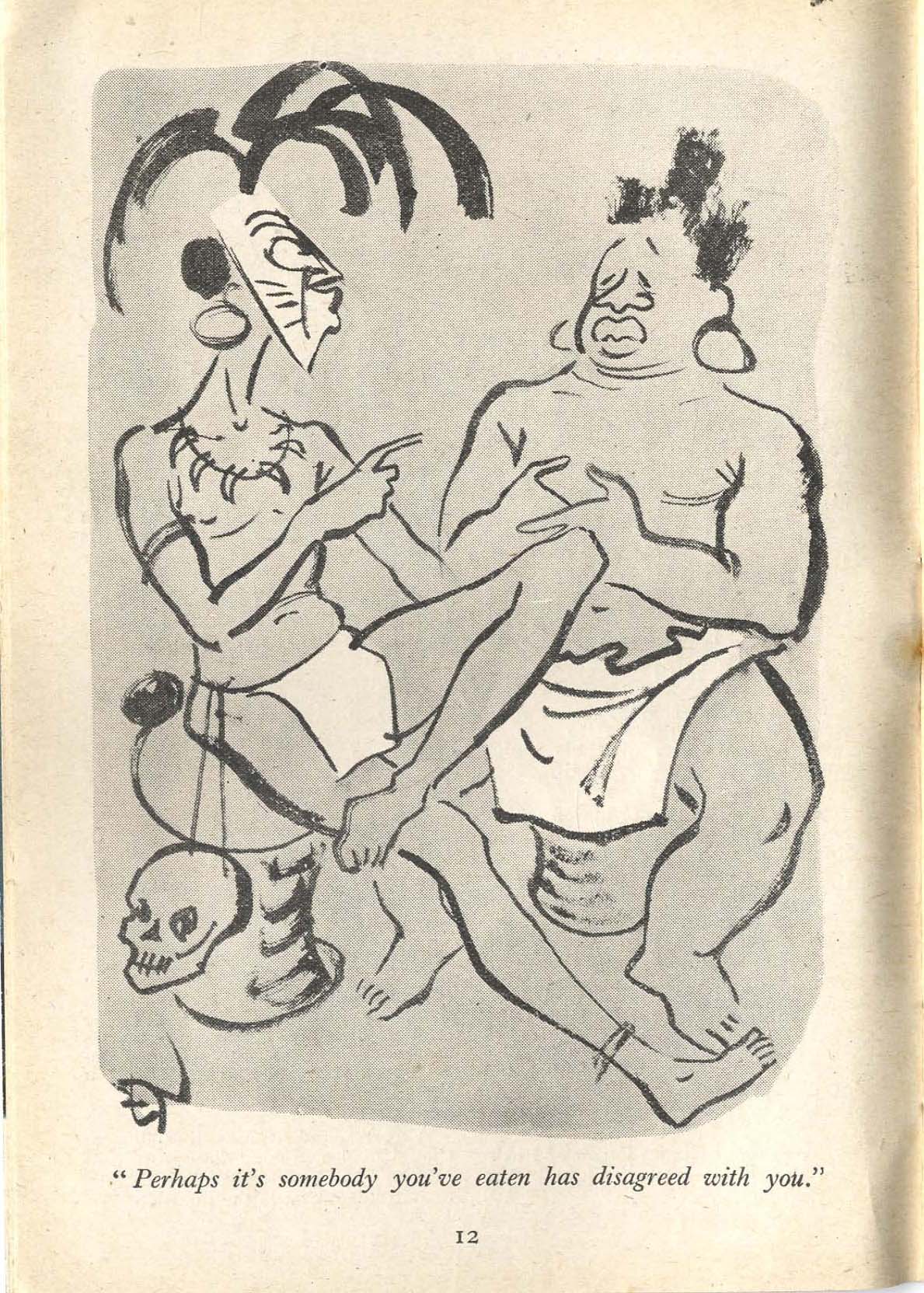 | This is by far the most pernicious and offensive category that has lingered long after Fakirs and Cannibals have been forgotten. I thought twice about including this miscellany, but maybe you will need proof one day how enduring are the stereotypical myths of racism within the Imperial Dream. I will check through the New Yorker one day to see if this is only a British phenomenon. Soglow was fond of the Bone through the Nose, and the Cooking Pot. |