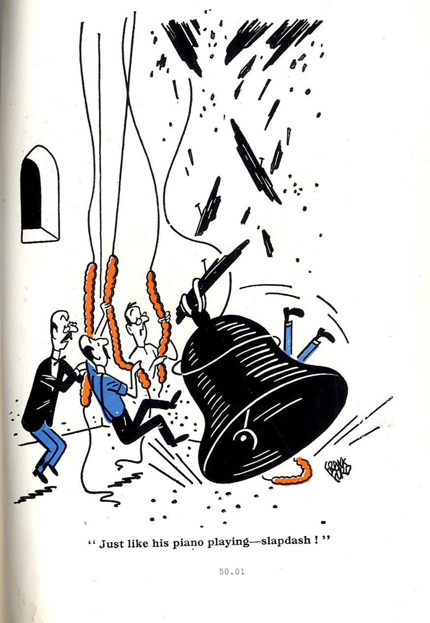 | Why so many monks? What is the difference between a Vicar and a Bishop? Given the relative unimportance of Bell Ringing, why does it feature so regularly in the Funnies? How big need an Angel's wings be? How many types of ghosts can you think of? There are six fundamental types including the Tudor Gent with Head under the Arm. How would you add a new element to the Fortune Teller's tent? Try drawing a Crystal Ball. |