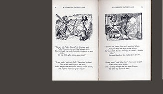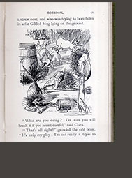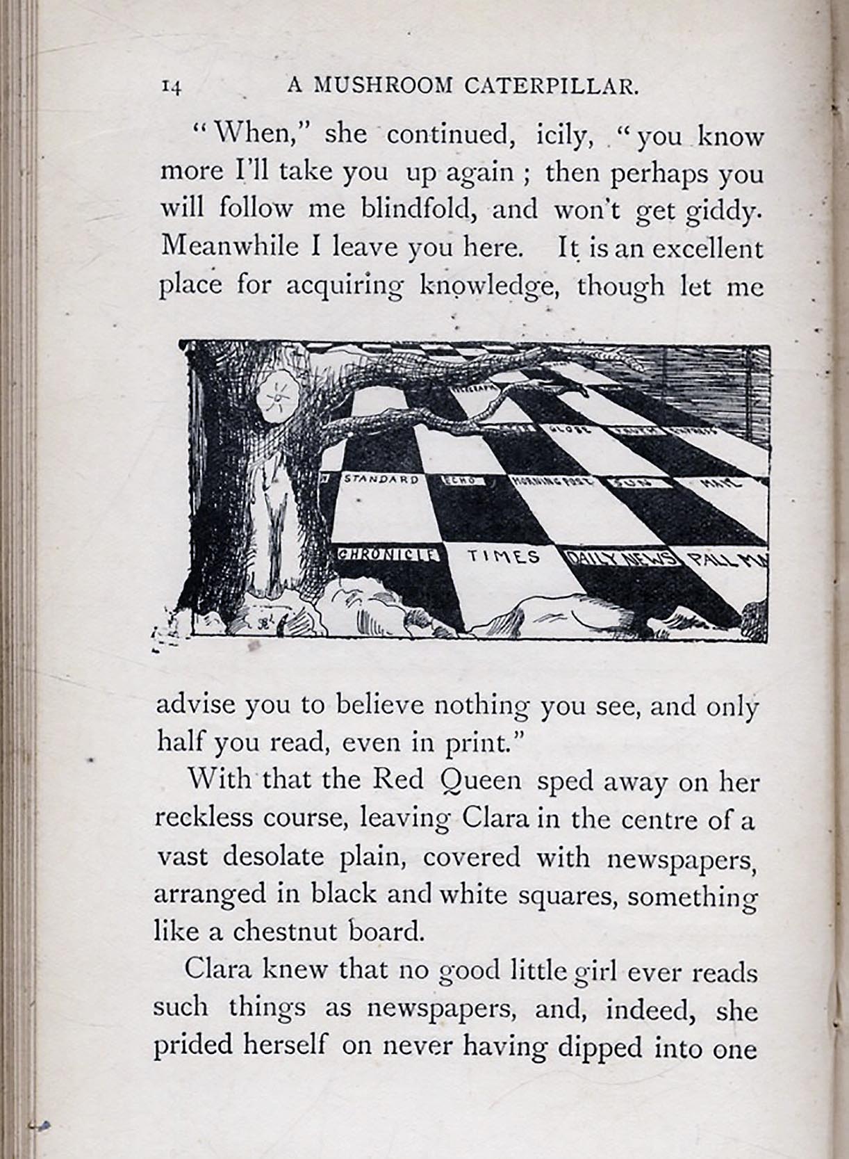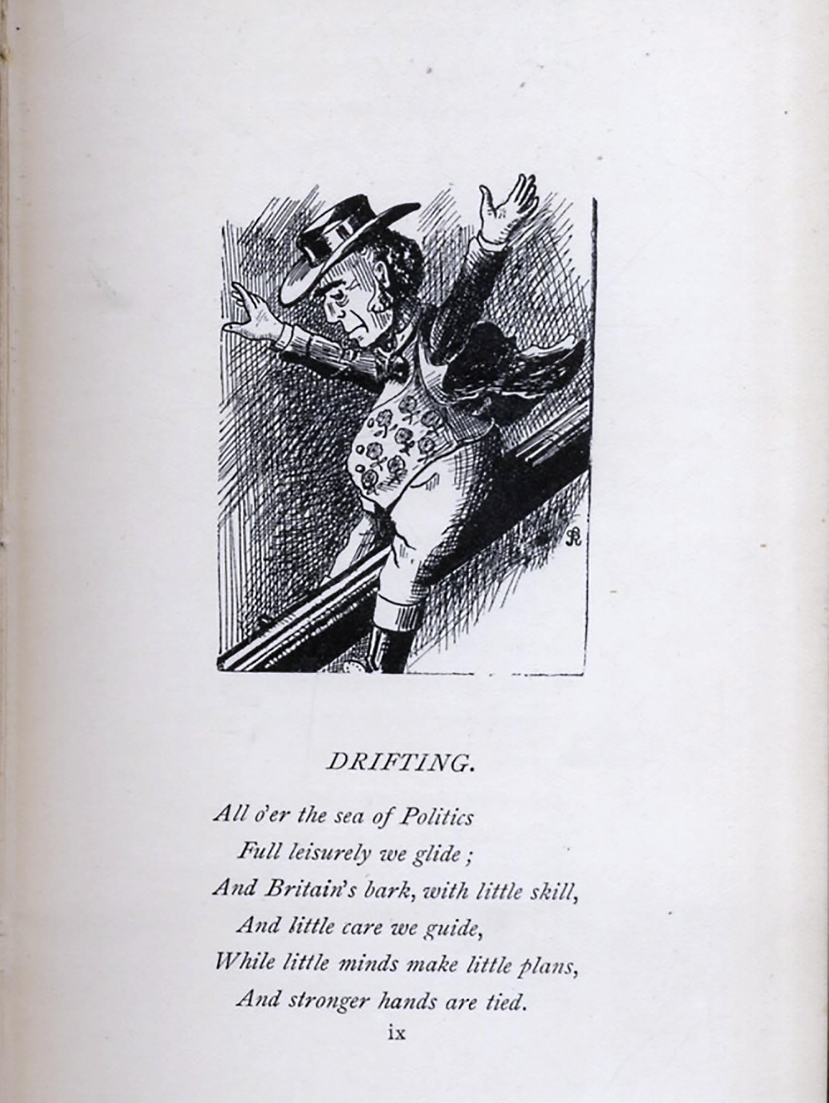 Not exactly distinguished, the illustrations nevertheless explore the extent to which the imagery and narrative of Lewis Carroll's Alice was sufficiently embedded in the national consciousness to make political points, in the way that a straight critique could not. Here Clara is the Leader of the House Balfour, other derivations are listed on the Wikipedia entry. And the book's the attack was mustered againt the Government's policy in the second Boer War. The narrative of Struwwelpeter was similalry deployed at the time to the same ends.