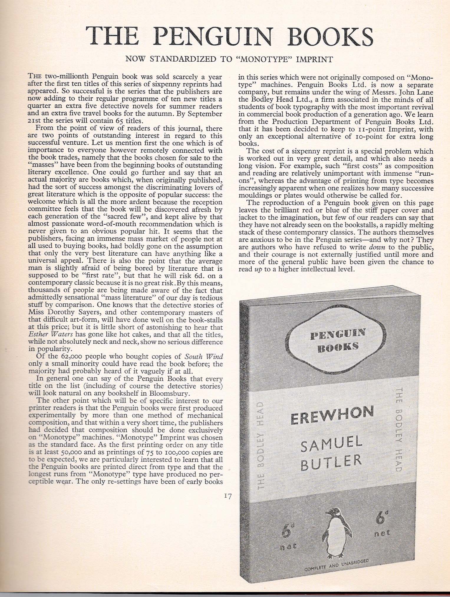 | MONOTYPE RECORDER, 1936, The Penguin Books standardised |