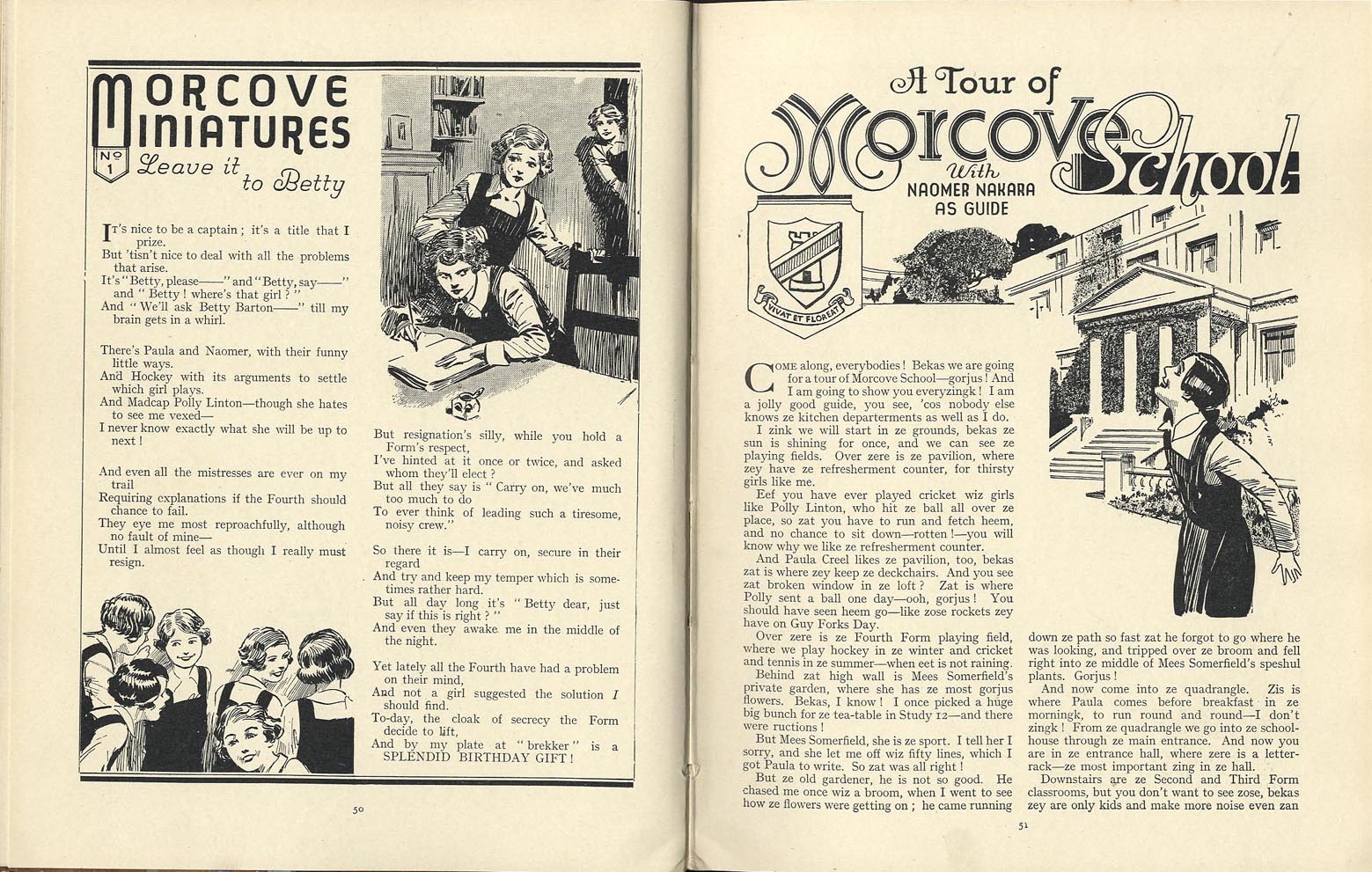 What a marvellous narrative opportunity - to invent an entire community with all its fads and foibles... buildings, feuds, libraries and to be able to devise even songs and rituals. Morecove School featured in The Schoolgirl's Own Annual (see also Greyfriars).