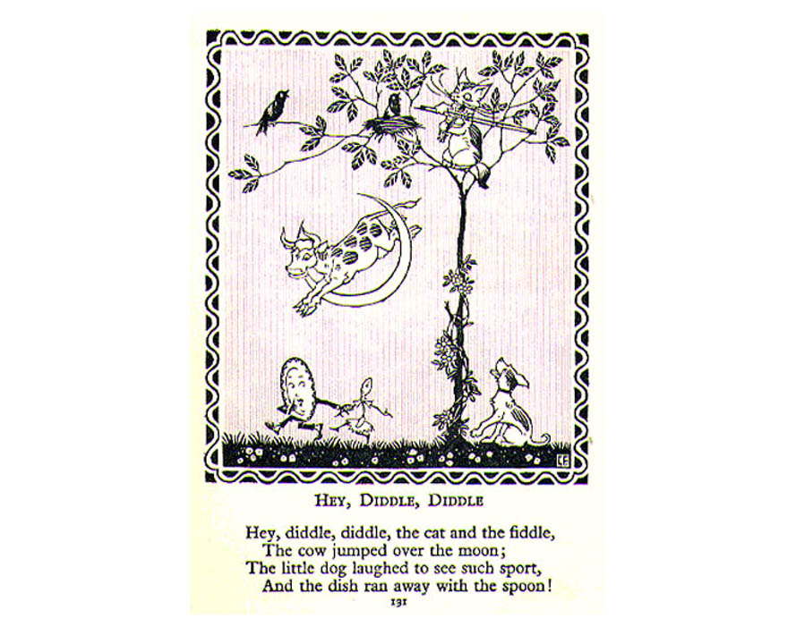 03 from Paul Woodruffe's illustrations to The Second Book of Nursery Rhymes ,George Allen, London 1896, 20 x 22cms. 04 from Margaret W.Tarrant's Illustrated Nursery Rhymes Ward Lock, London , undated c1920. 11 x 13cms. 05 from Charles Folkard's illustrated edition of Nursery Rhymes ,Dent London 1932.