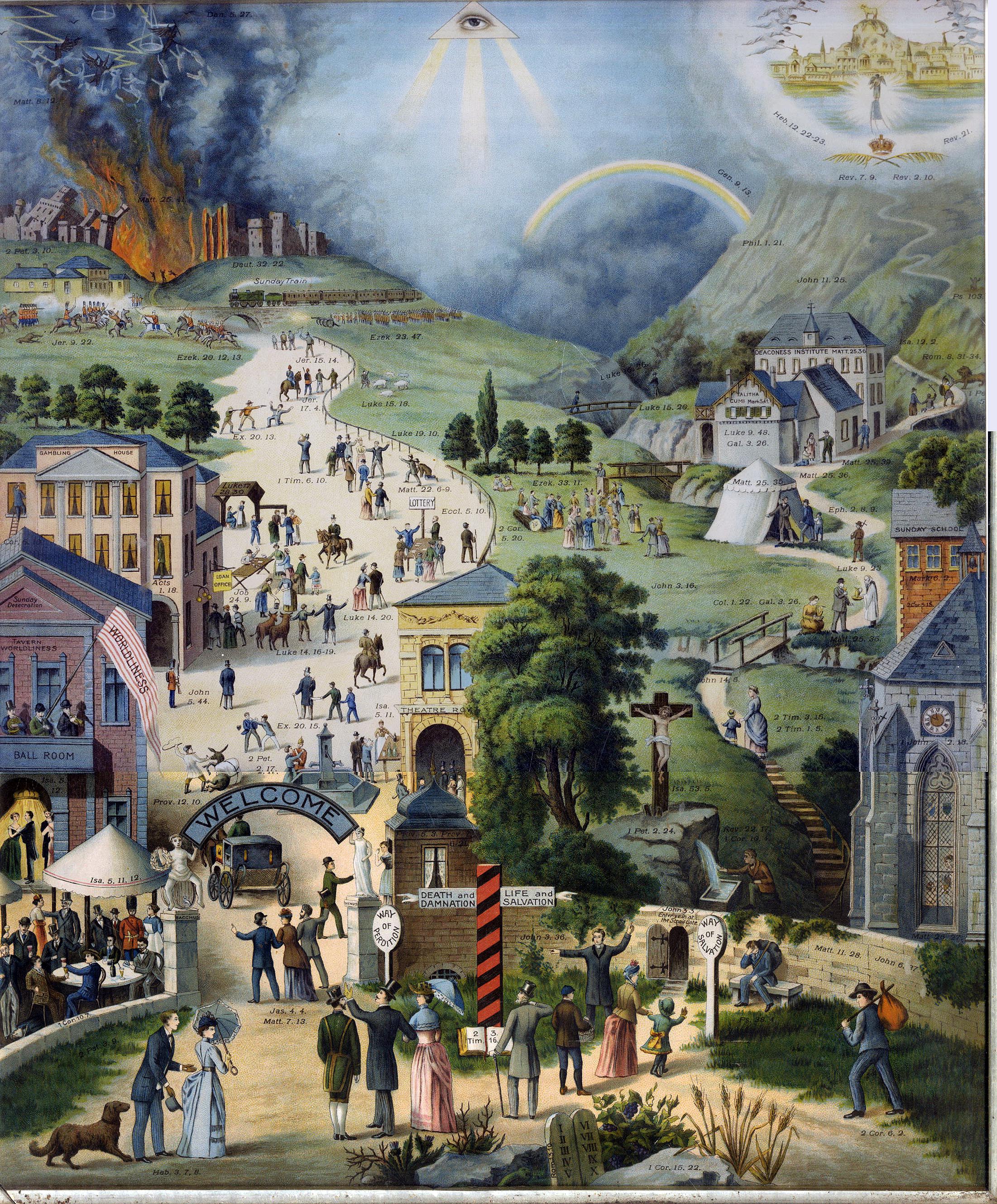 LANDSCAPE AS METAPHOR and The Moral Landscape - the meaning of Desert Isles. 01 The Broad and Narrow Way, ?Schacher, 38 x 42 cms lithograph. 02