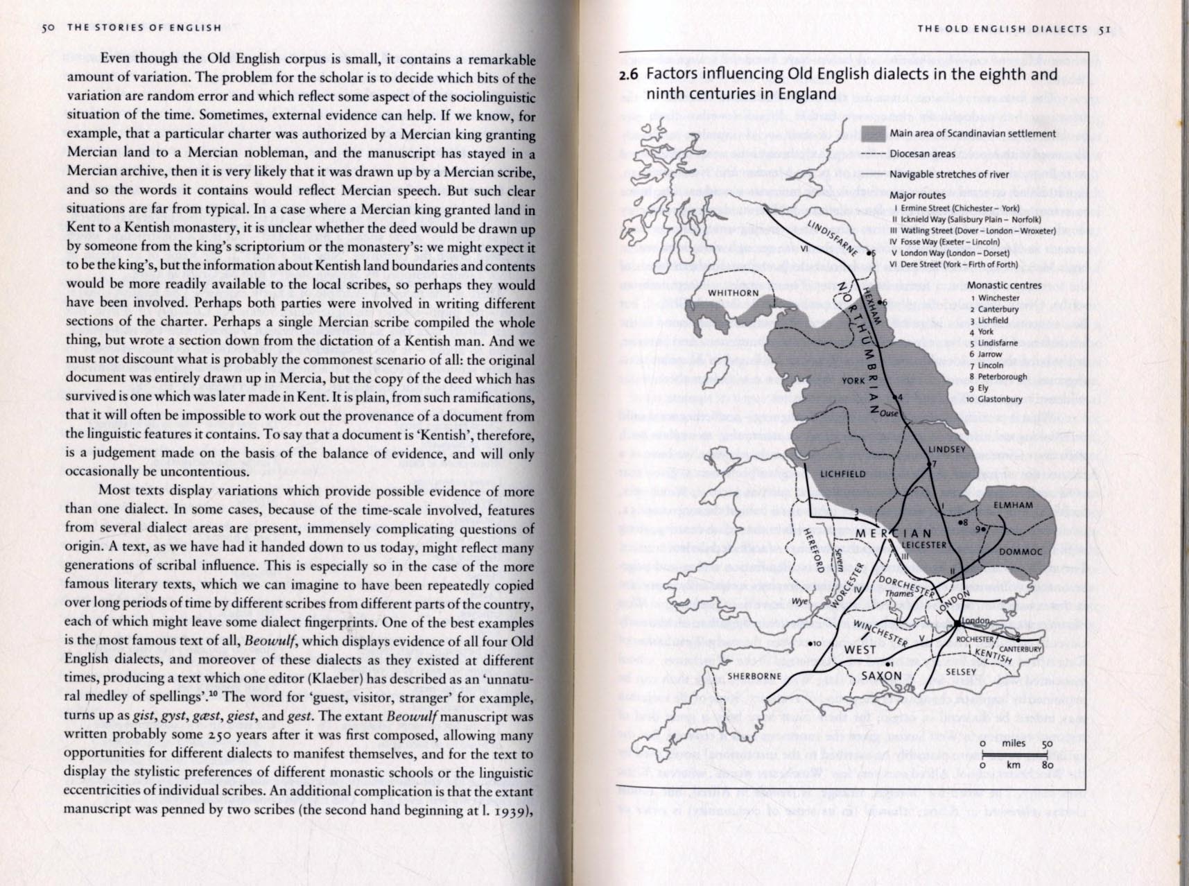 FACTORS INFLUENCING DIALECTS IN THE 8TH AND 9TH CENTURIES IN ENGLAND FROM CRYSTAL, THE STORIES OF ENGLISH |