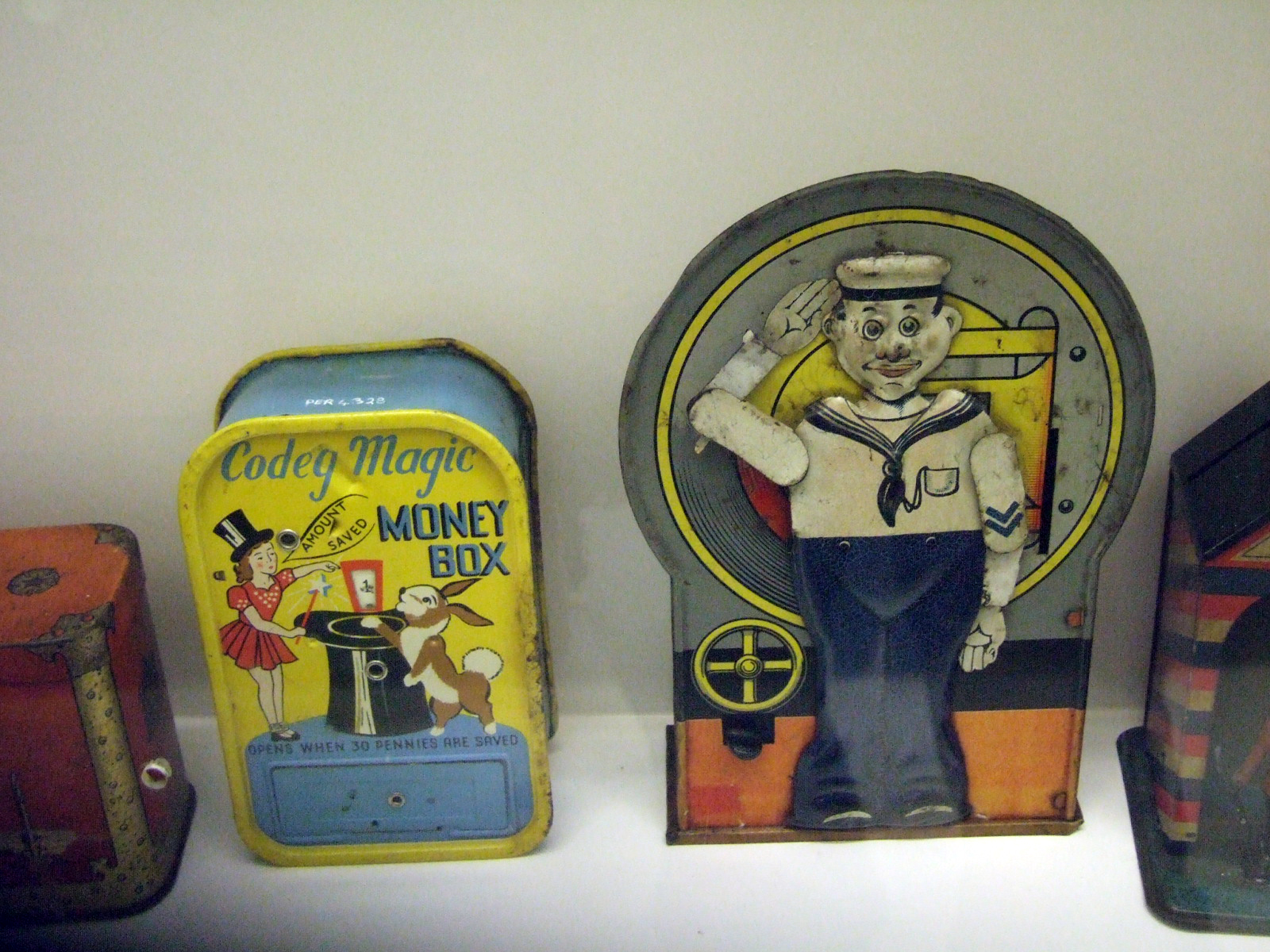 How to stop the child spending, how to install thrifty habits? The Money Box is the deal. Several of the above offer inducements, William Tell shooting coins with his cross bow, and the Great White Whale placated with money. Reach a certain target and you are rewarded by being granted access to your own money. I owned a Blackamoor Money Box and found it unsettling. Its example did induce me to suck sixpences to see what he was suffering. Not that he ever had much given to him. Only the Uncle Sam figure offers a satirical aside, in likening the deposit of money to the Tax System when Sam drops the offering into his briefcase. From the condition of the examples at Holkham it is clear the Money Boxes were regaulrly attacked out of frustration at the parent having wielded a knife's blade, or out of the need to get at your own resources.Not a lot has changed.