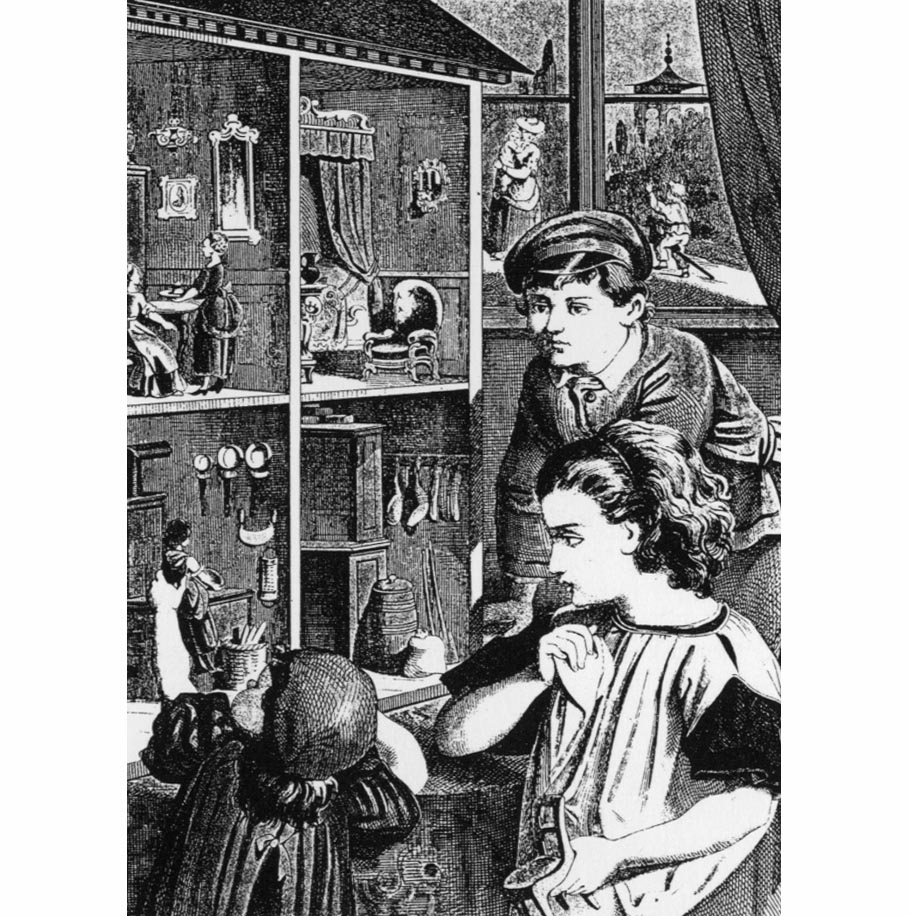 Inside the signal box, the face of the young controller. Hornby Dublo 1935 The room with the Rose is in the Thorne Miniature Rooms, Chicago (shades of Magritte) Children play with a Doll's House, French c1890 Three Children play with model boats, Tom Tit 1890