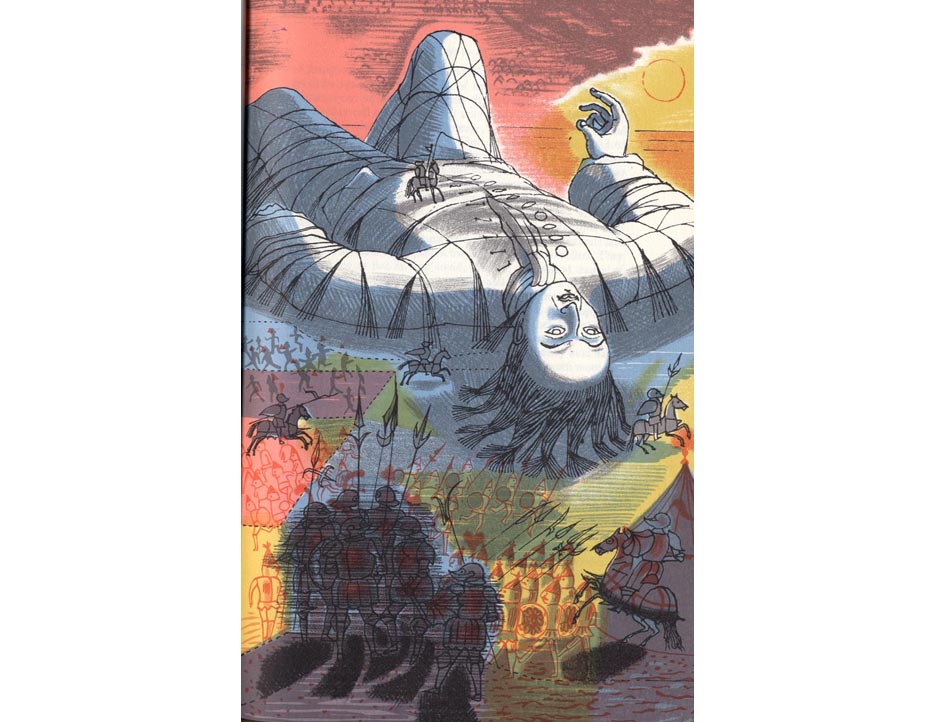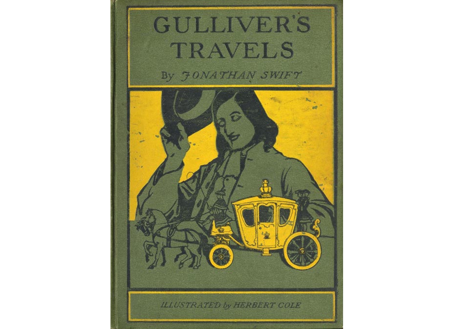 "I attempted to rise, but was not able to stir; for, as I happened to lie on my back, I found my arms and legs were strongly fastened on each side to the ground, and my hair, which was long and thick, tied down in th same manner. I likewise felt several slender ligatures across my body, from my arm-pits to my thighs.... when bending mine eyes downwards as much as I could, I perceived it to be a human creature not six inches high,with a bow and arrow in his hands, and a quiver at his back. In the mean time, I felt at least forty more of the same kind (as I conjectured) following the first. I was in the utmost astonishment, and roared so loud, that they all ran back in a fright..." Gulliver hears that there is a fire at the Palace which he extinguishes by pissing on it. "I got up in an instant, and orders being given to clear the way before me; and it being likewise a moonlight night, I made a shift to get to the palace without trampling on any of the people." "Glumdalclitch often carried me into the gardens of the court in my smaller box, and would sometimes take me out of it and hold me in her hand, or set me down to walk." |