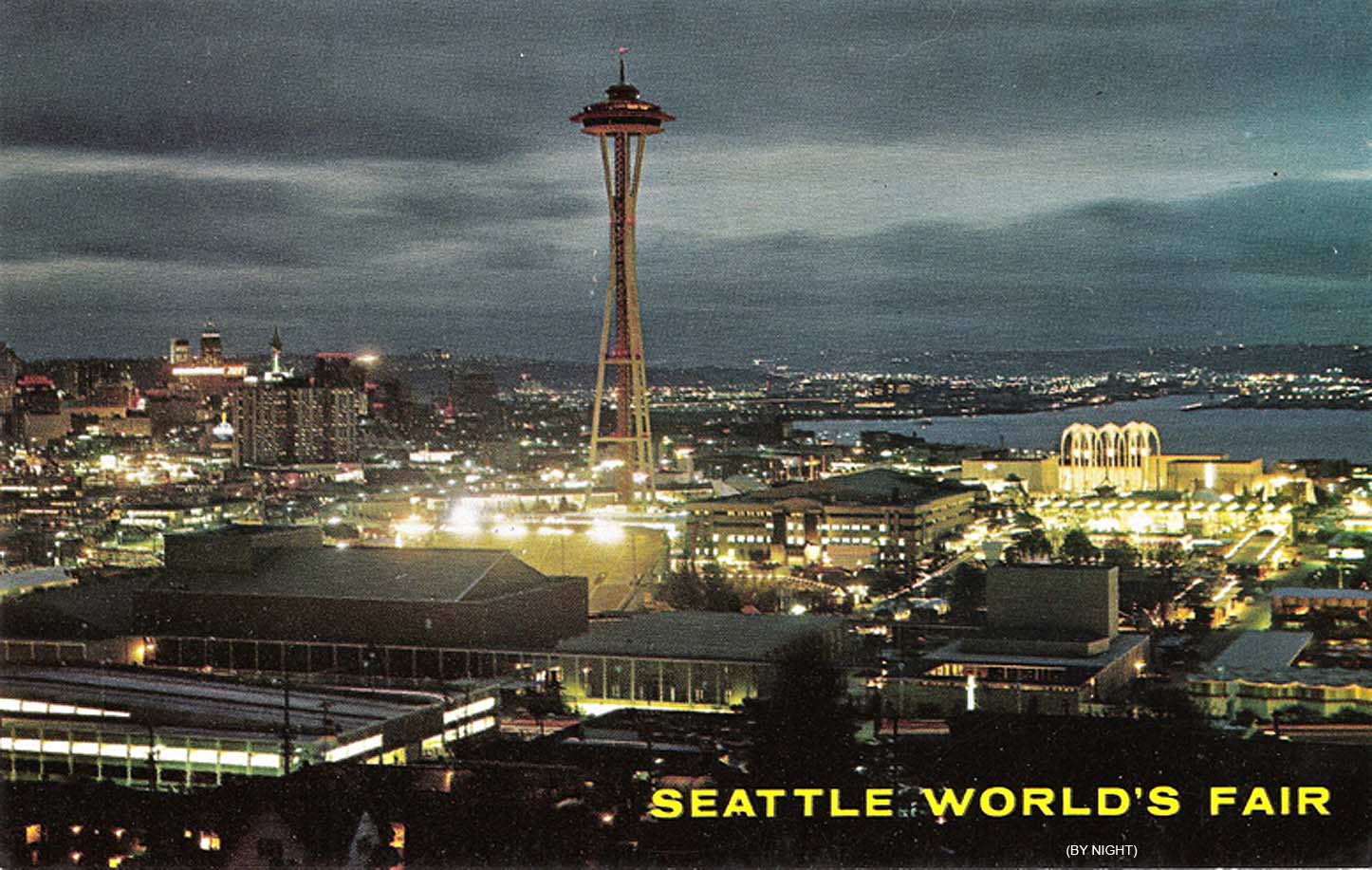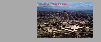 "My most ambitious and time-consuming job was the two and a half page spread for LIFE of the Seattle World's fair, February 1962. In the months prior I made trips to Seattle (my first to the West) for conferences and on-the-spot surveys while construction was in progress. I had been given carte blanche and was on my own. I talked the editors into accepting my idea of a night scene with spectacular lighting - which I had to invent. With plans, photos and color transparencies of a very accurate scale model, my work was cut out for me, actually six months from start to finish. Ninety five percent of the work was done with the airbrush and numberless friskets. Small details with the smallest brushes available. No-one saw the work in progress nor knew what to expect. No researchers looking over my shoulders. My one and only such experience. This was next to last assignment for LIFE. Change of art director thrust me aside. Some personal antagonisms didn't help." The Fair opened April 21st 1962 and had more of its fair share of lunacy - the Bubbleator Elevator, the biggest Birthday Cake in the world, a Wild Mouse ride, an International Fountain, a Food Circus and the usual appearence of the House of Tomorrow. It was the setting for one of the more vapid of Elvis Presley's movies, It Happened at the Fair. The Space Needle from which Elvis surveyed both girl and landscape, was originally painted a warm orange which was criticised at the opening (not least by Prince Philip the Duke of Edinburgh) for looking like the priming paint used on bridges. Not the first example this of the meddling of the British Royal Family in aesthetic matters way beyond their ken. For Tony the job signified the end of a lucrative and widely distributed source of employment with LIFE - perhaps repeating the way that he had been eased out of FORTUNE by the new art directors' orientation towards European modernism after Hank Brennan. Tony's visualisation is photographed above in its frame on his patio at Mount Tabor. It has a compulsive, even obsessive sense of detail, all of it accurate, none of it approximated. See how sparkling is the Amusement Zone, known confusingly as the Gay Way, a range of up-to-date European amusement features radiating light but clear in structure. |