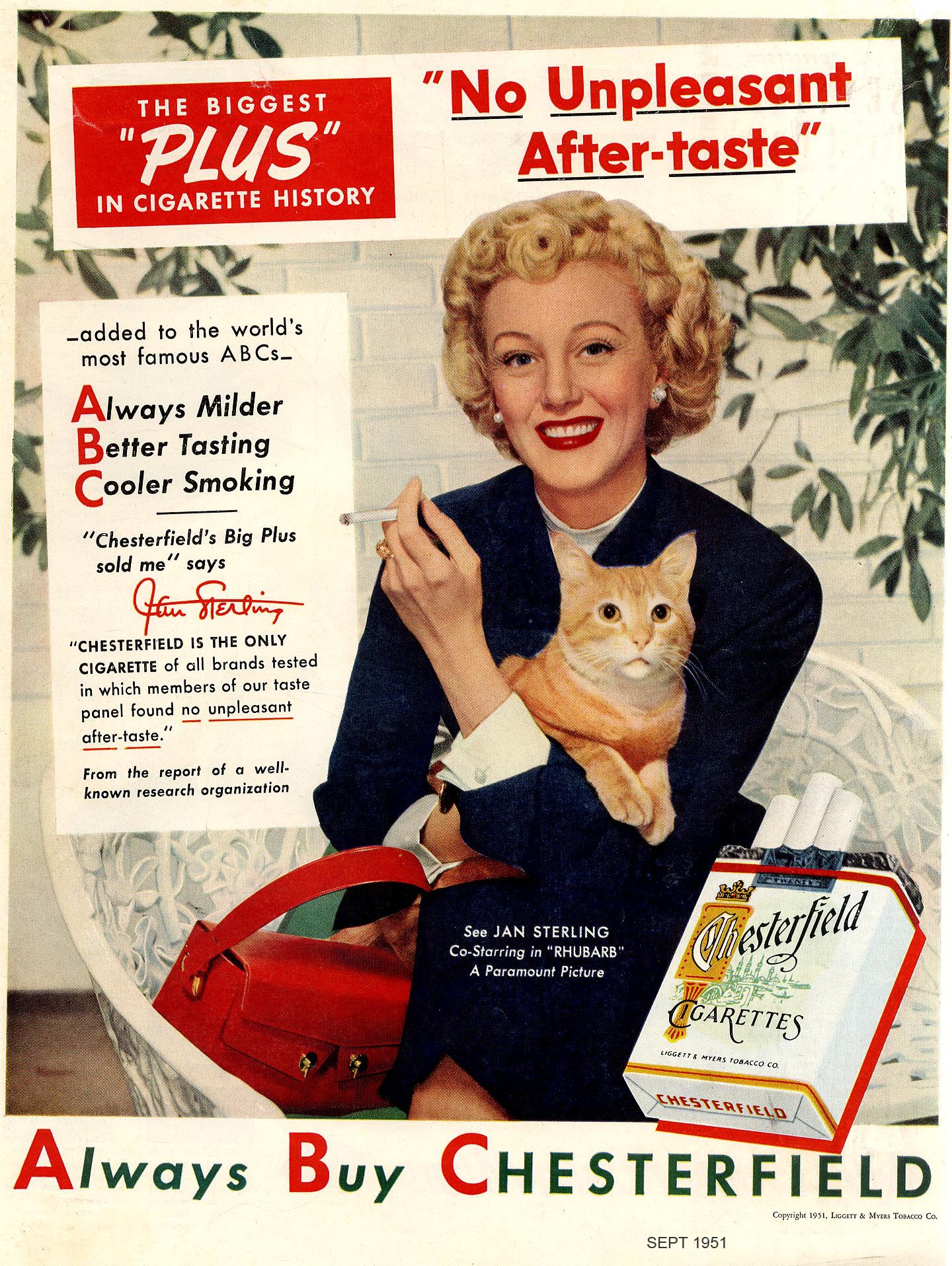 Lucille Ball for Philip Morris Lucille Ball for Chesterfield Nancy Kelly for FATIMA Martha Tilton for Camels Jane Greer for Camels ............................................................. Patricia Neal for Chesterfield Deborah Kwerr for Chesterfield Maureen O'Hara for Camels Mona Freeman for Chesterfield Jan Sterling for Chesterfield, starring in Rhubarb Hedy Lamarr for Lucky Strike ................................................................. Susan Hayward for Chesterfield Lilli Palmer for Chesterfield Rita Hayworth for Chesterfield Linda Darnell for Chesterfield Yvonne de Carlo for Chesterfield Jane Wyman for Chesterfield .................................................................... Gene Tierney for Chesterfield Barbara Stanwyck for L&M Janet Blair for Lucky Strike Ruth Roman for Chesterfield (and Ben Hogan) Patricia Neal for Chesterfield (again with centre wear) Joan Fontaine for Chesterfield ............................................................................... June Arnold for Camels Patricia Munsel for Camels Maureen O'Hara for Camels (recumbent) Marie Wilson for Chesterfield Peggy Lee for Chesterfield Rise Stevens for Chesterfiled and Carmen. |