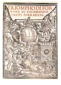 | LEFT Sigismondo Fanti, Triumpha di fortuna, the 15217 edition with disputed authorship of the images - perhaps Dosso Dossi. One of the many Fortune Telling books in sixteenth century Italy.