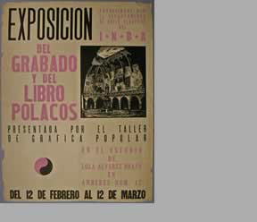ROW THREE Adolfo Mexiac Title:"Exposición Gráfica documental..." Date: 1951 Medium: Linoleum cut with type Edition: Unknown Inscriptions/Annotations: None Paper/impression quality: Excellent impression on typical poster paper. Image dimensions: 12.4" x 12.6" Sheet dimensions: 35.6" x 13.7" Prignitz number: 132 Reference:TGPpr, # 132, 322.TGPwom, 19. Xavier Íñiguez Title: "El Gobierno del Estado de Zacatecas presenta: 2a..." Date: 1959 Medium: Linoleum cut with type/lettering. Edition: Unknown Inscriptions/Annotations: None Paper/impression quality: Excellent impression on typical poster paper. Image dimensions: 15.6" x 11.9" Sheet dimensions: 30.2" x 22" Prignitz number: 1743 Reference:TGPpr, # 1743, 416. Description:A promotional poster for the second annual exhibition of works by theTGP in the state of Zacatecas.The image presents a festival scene with celestial elements including a wonderful depiction of the Soviet satellite Sputnik trailing peace doves in its wake! A beautifully executed image. Leopoldo Méndez Title:"El Gobierno del Estado de Zacatecas presenta..." Date: 1958 Medium: Linoleum cut with type. Edition: Unknown Inscriptions/Annotations: None Paper/impression quality: Somewhat light impression on typical poster paper Image dimensions: 12.0" x 16.3" Sheet dimensions: 31.7" x 23.7" Prignitz number: 1741 Reference:TGPpr, # 1741, 415. Description:A promotional poster for the first annual exhibition of works by theTGP in the state of Zacatecas.The image of a man, dead or being tortured, being dragged behind horses by 'malo hombres.'The print is titled ¡Bestias! and is from the Méndez portfolio entitled Río Escondido. Note that the linoleum block lost part of one corner between printing for the portfolio (1947) and the poster. Unknown artist, Title: Exposicion del Grabado y del Libro Polacos Date: 1951/52 (as per MZcap, pgs. 220 and 247.) Medium: Linoleum cut or woodcut in black with type in black and pink. Edition: Unknown Inscriptions/Annotations: None Paper/impression quality: Excellent impression on typical poster paper. Image dimensions: 12.9" x 11.9" Sheet dimensions: 37.0" x 27.6" Prignitz number:Apparently not listed in Prignitz. Reference: MZcap 220, 247 (mention of exhibition.) |