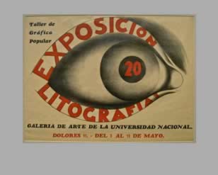ROW FOUR Francisco Dosamantes Title:Taller de Gráfica Popular. Exposición 20 Litografías. Date: 1939 Medium: Lithograph in black and red with handset type in black and red. Edition: Unknown Inscriptions/Annotations: Signed in stone "F2A." Paper/impression quality: Excellent impression on lightweight litho poster paper. Image dimensions: 14.2" x 21.2" Sheet dimensions: 16.2" x 22.2" Prignitz number: 37 Reference:TGPpr, # 37, 312. MPmmp, 222, 237. LMcms, #216A. Adolfo Mexiac Title: Exposicion Plateria Méxicana Date: 1952 Medium:Two color linoleum cut in black and yellow with type in black. Edition: Unknown Inscriptions/Annotations: in block at LL "TGP Mexiac." Paper/impression quality: Good impression on typical poster paper. Image dimensions: 15.8" x 21.2" Sheet dimensions: 32.0" x 24.2" Prignitz number: 141 Reference:TGPpr, # 141, 323. |