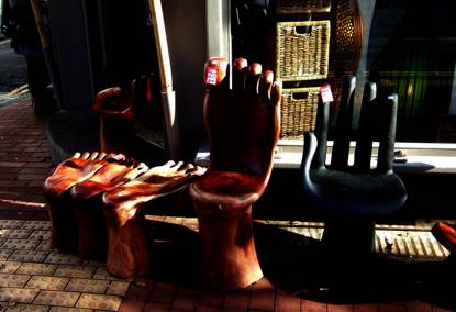 ‘It’s about time we heard from Cosmo again’. They were walking slowly along Gardner Street in Brighton, part of the North Laines area, so named from its origins in the small runnels of land that had existed long before, in older times, to plough, cultivate and grow food. Now, it was a busy small street, full of small shops, with displays of clothes hanging on racks outside, and the metal tables and chairs of small cafes, crowded and busy, despite the slight chill of a sunny late October morning. Because of the number of people passing, some talking loudly into their mobile phones, they failed to notice the small dark man, in jeans and windcheater, who followed them, sliding sinuously and quietly, through the throngs behind. They turned to look into a shop window, where dark velvet dresses had caught their eye. Annie sighed mischievously at her brother. ‘Don’t you think I’d look good in that?’ she whispered in what was her best seductive manner. It was lost on Simon, who was looking up at a pair of old trainers suspended on a telephone wire across the street. ‘Look at that!’ Reminds me of when the Brotherhood used to pass messages to us! They always used to throw them at us, and I was always the one that got hit on the back of the head with it! Why me?’ ‘It’s because they thought I was too ladylike to receive messages in that manner’. Annie said in her prim voice. ‘More like they knew I was the most intelligent. Yuk! Smelly old trainers, with notes inside! At least they use phones and email, now they’ve realised they’re in the twentieth-first century’. Annie sighed. She still had not noticed the little dark man, who had, without their knowing, snapped them in profile on a small camera-mobile, whilst looking in the window. He spoke urgently into his phone this time, as he saw them wandering towards Bond street, that continued towards North Street and the Laines beyond. On East Street, that led down towards the seafront, they paused and gazed with fascination at the rows and rows of old sewing-machines that were displayed on racks inside the plate-glass windows of a big, post-holocaust, industrially chic clothing store. They couldn’t see inside, so neither saw another small dark man, who quickly photographed them again, between the clothes-racks, this time in full face. He turned away quickly and spoke rapidly into the phone. ‘I’ve got them. No problems. We’ll get them back to you, straight away…yes….same place. Fine’. He strolled out of the shop with a small smile on his face. ************ A week later, a small package, wrapped in brown paper, was thrust by the postman into the letterbox. Annie picked it up, sleepy and yawning. She looked down at the address: “Simon and Annie Wheeler, blah, blah, blah”. Time for breakfast. She was beginning to pull it open, when Simon appeared, tired, disgruntled and tousle-haired, in his dressing-gown. ‘What’s that?’ he asked, as he poured himself a mug of tea. Annie was staring at the contents of the envelope. There were two nametags, both bearing their photographs, in profile and front. Underneath, were their full names. There were two others that bore the image of the strange figure, with large head and stick-like limbs, that the skeleton, at the dance of death, had left. Below, was strange writing, virtually undecipherable. All four tags had a loop of string attached to them. ‘How did he get these? Not even my best side too!’ she added venomously. Simon chose not to answer, but pointed to a small note that had fallen out of the envelope under the labels. Anne picked it up and read the scrawl, in green biro, while Simon began to make toast. She furrowed her brow, until Simon came back to the table with their breakfast. They looked at it together. “Visit of a lifetime! Sunny Purgatory in all its glory! Your visas and identifications enclosed. Will contact you shortly. Keep watching the skies, screen, I mean. That sister of yours does scrub up well! Tasty bird. Your very own winged messenger, Cosmo” ‘Very enticing. At least he’s got a sense of humour. Don’t glare like that, Annie. Your face will get stuck’. ‘Rotten little swine! He makes me sound like a roast chicken! Wait till I get my hands on him’. ‘At least, wait until after he’s taken us there and back, before you dismember him’. *********** It was the middle of the night. Annie was asleep, after vowing vengeance upon the unfortunate Cosmo, when she was awakened by a terrible presence! She opened her eyes and screamed softly. Her brother stood in shorts and a crumpled T-shirt, shaking her shoulder. ‘Wassamater?’ she groaned. ‘Cosmo. He’s on the computer now! Come on, quickly, before we lose him!’ Annie groped her way into her dressing-gown, and fumbled her way into Simon’s bedroom. She saw a brightly flickering screen that, as she entered, suddenly crackled into a fuzzy image of a head and shoulders. She focussed, rather blearily on it. ‘Cosmo, you snotty little toe-rag!’ she snarled. The voice hissed, and became clearer. “…..haven’t been called that a while! Reminds me of when I was alive’. Listen….’ Buzzzz, crackle, crackle, hissss…..meet at….crackle…Fishing Museum…..Hisssss, whistle, crackle…seven, tomorrow morning….Hissss….Day trip. See you, signing off from Limbo’. Click. The screen returned to its normal grey colour. ‘That’s only six hours away! ‘We’d better get some more sleep then. I wonder what the time difference is between here and Limbo?’ ‘I don’t know and I don’t care! ‘Annie, that’s the difference between ignorance and apathy’. ‘Go to bed, Simon!’ ************ Annie was still ill-tempered, as they stood shivering, beside the dark, looming hulks of the fishing boats on the beach, outside the Fishing Museum. ‘Why here?’ she complained. ‘Around all these rotten old wrecks!’ Simon looked offended. ‘These were once part of the pr