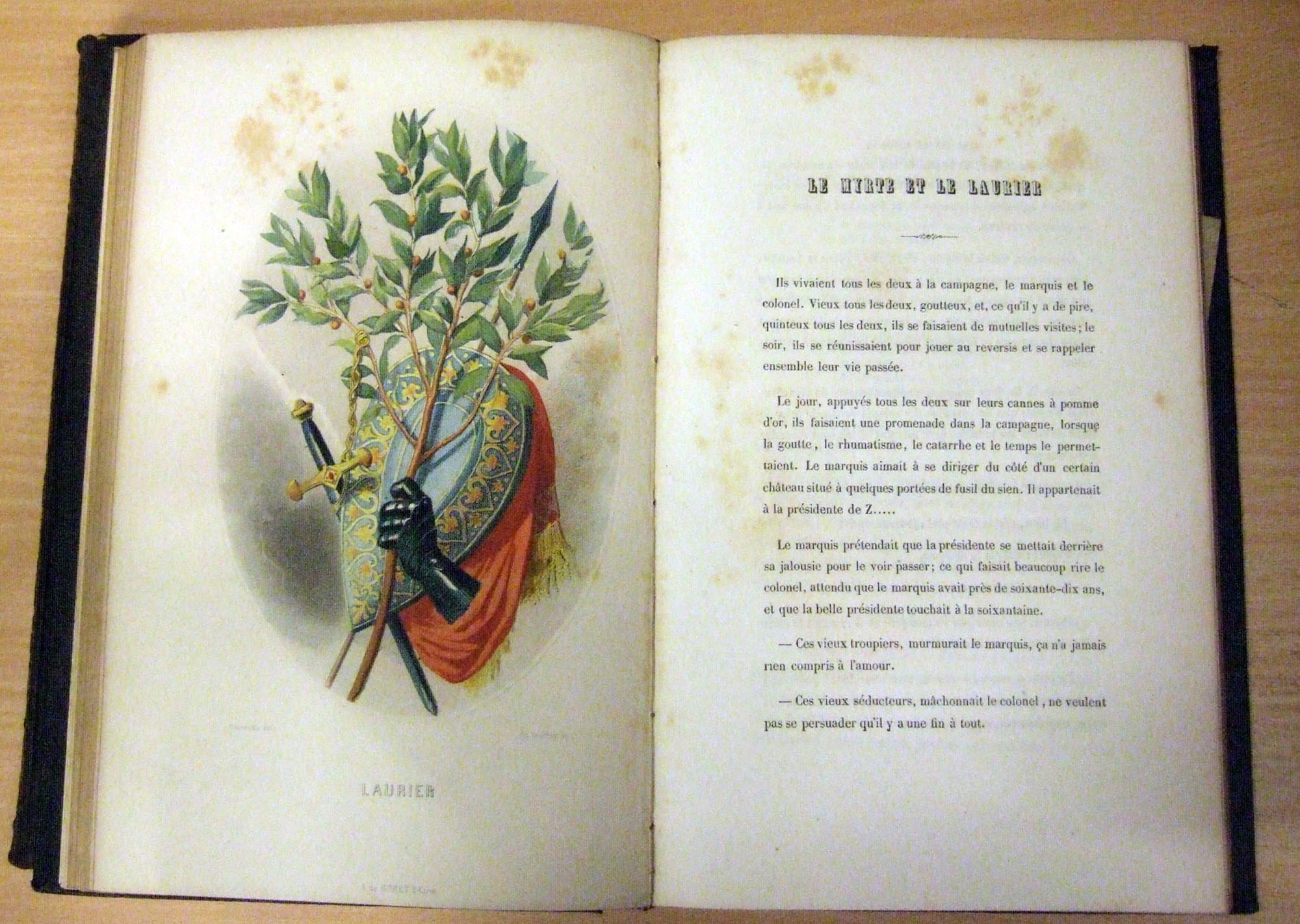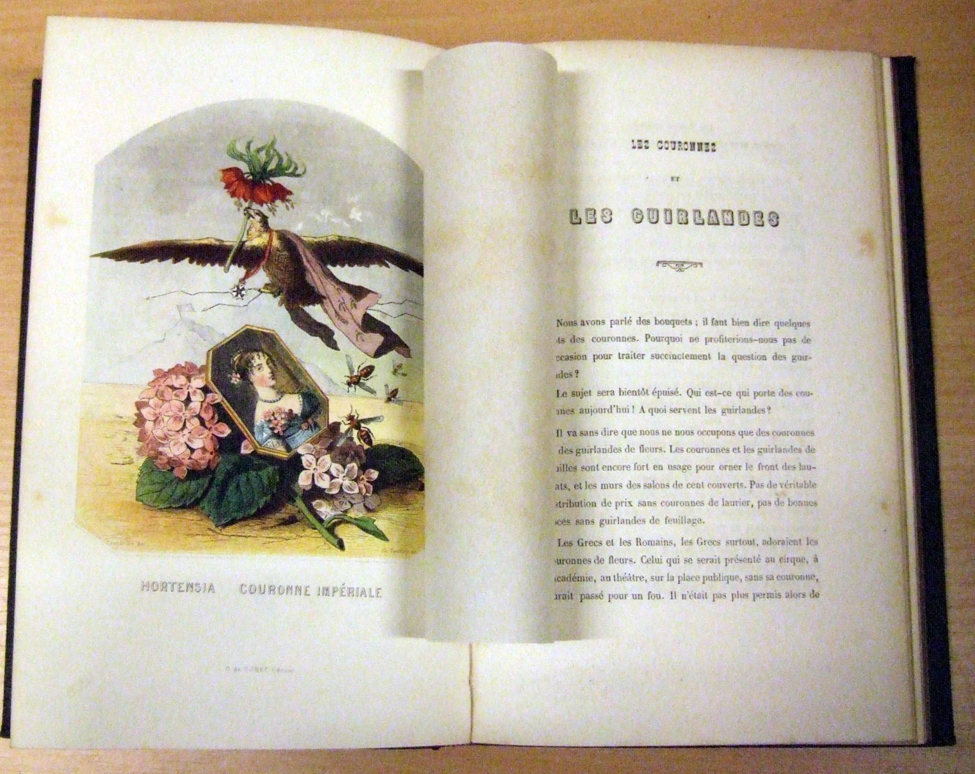 J.I.I.Gerard (known professionally as J.J.Grandville 1803-47) was a prolific illustrator and cartoonist who, like so many of his generation, cut his satirical teeth with Charles Philipon's magazines, La Caricature and La Charivari. He went on to illustrate the standard texts, Robinson Crusoe, Gulliver's Travel's and in the year after his death, Cervantes' Don Quixotte. The Fleurs Animées were first published the year of his death and this edition, with fine coloured plates, ten years later. A second and improved edition appeared in 1867. The binding in the Brighton copy is a particularly fine cartonnage de l'editeur - a publisher's binding. Grandville's personifications are ingenious and slightly uneasy, as was much of his fusion work whereas other artists easily surrendered to the sentimentality of the Girl-Flower. This intensity of his graphic style made his work influential across subsequent generations of artists specialising in Fancy and Fantasy, be it Tenniel's illustrations to Lewis Carroll's Alice, or the later excursions of the Surrealists into uneasy metamorphoses and disturbing reveries. Magasin Pittoresque 1850