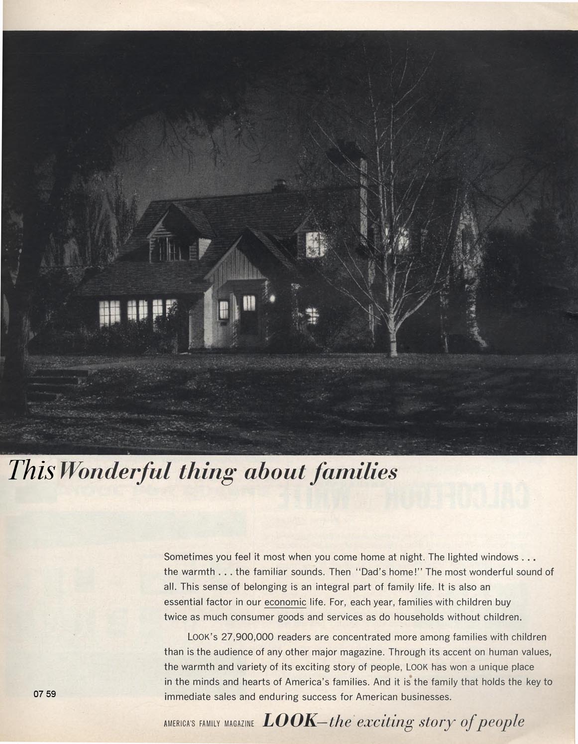 01 SOLID CITIZENS from National Distillers' Products - not a drunk or a woman in sight (March 1956) 02 THE FIRST SIGN OF BLIGHT, American Council to Improve our Neighbourhoods (March 1956) and what about that rundown district downtown? 03 DAD'S HOME, THE MOST WONDERFUL SOUND OF ALL, LOOK magazine July 1959 04 THE COLLECTIVE MINDS AND MONEY BELTS OF THE MIDDLE MILLIONS, would you trust a man dressed like this, shedding cash, American Weekly magazine March1954 06 AMERICAN FAMILIES ARE YOUNG AND GROWING, Glidden products 1957 07 THESE ARE FUNDAMENTAL, Lee Rubber and Tire, c1948 08 ALUMINIUM IS STRONG ENOUGH TO DELIGHT THE MOST RUGGED-LIVING SPORTSMAN, Kaiser Aulminium 1956 09 HERE IS A GOODLY LAND - ALABAMA, beyond the last frontier, Seaboard Air line Railway c1945