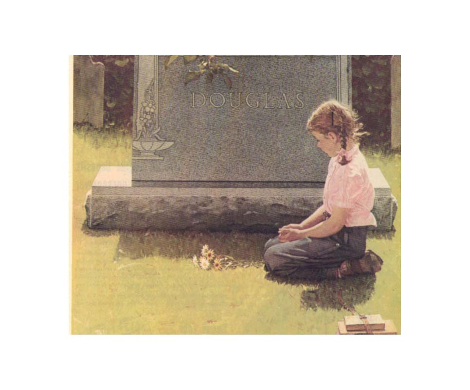 Malice ? Given the rivalry and tensions between the two illustrators, is it impossible that Norman Rockwell in this ad for Rock of Ages Monuments, deliberately inscribed "Douglas" on the tomb with a malign purpose ? March 1955