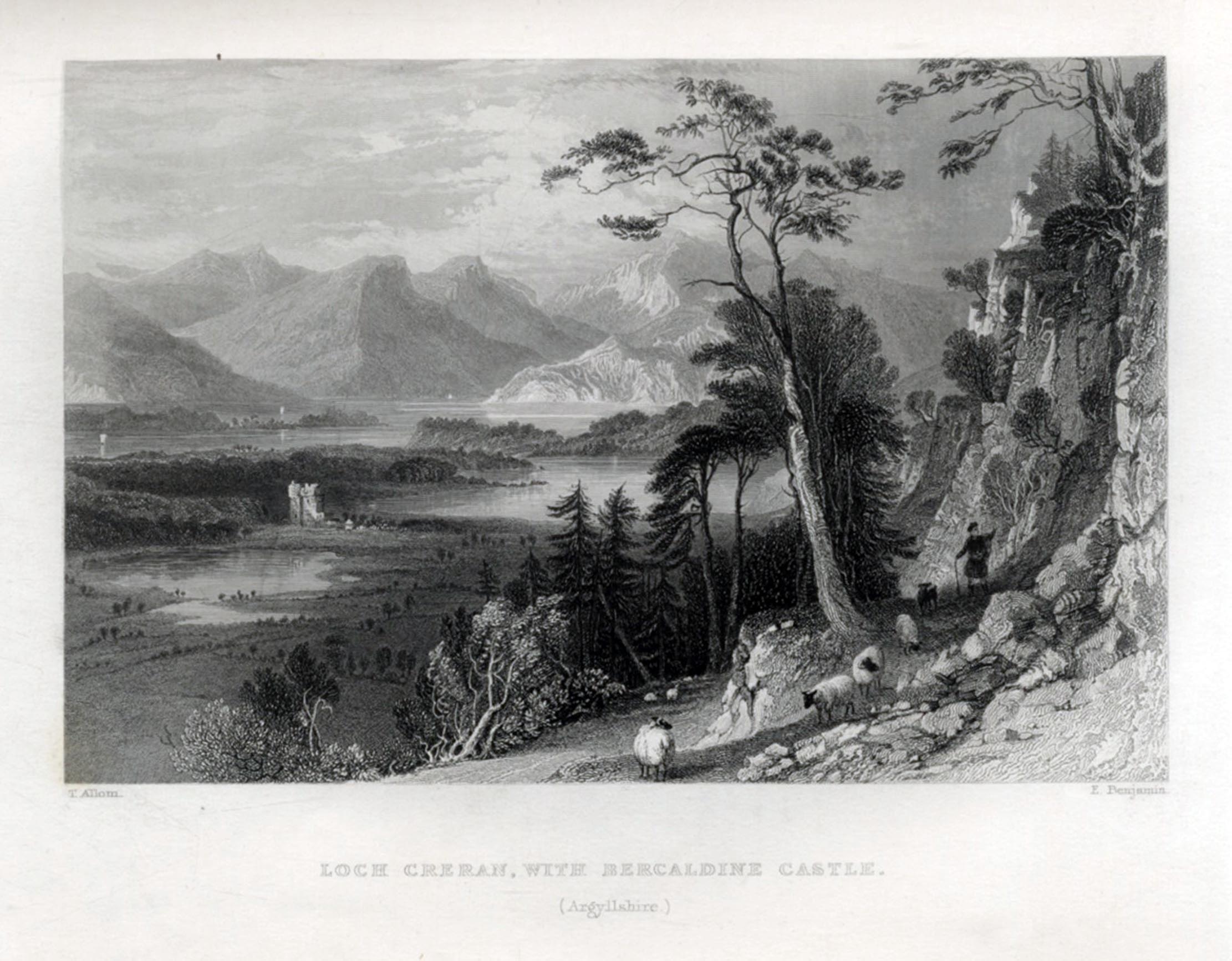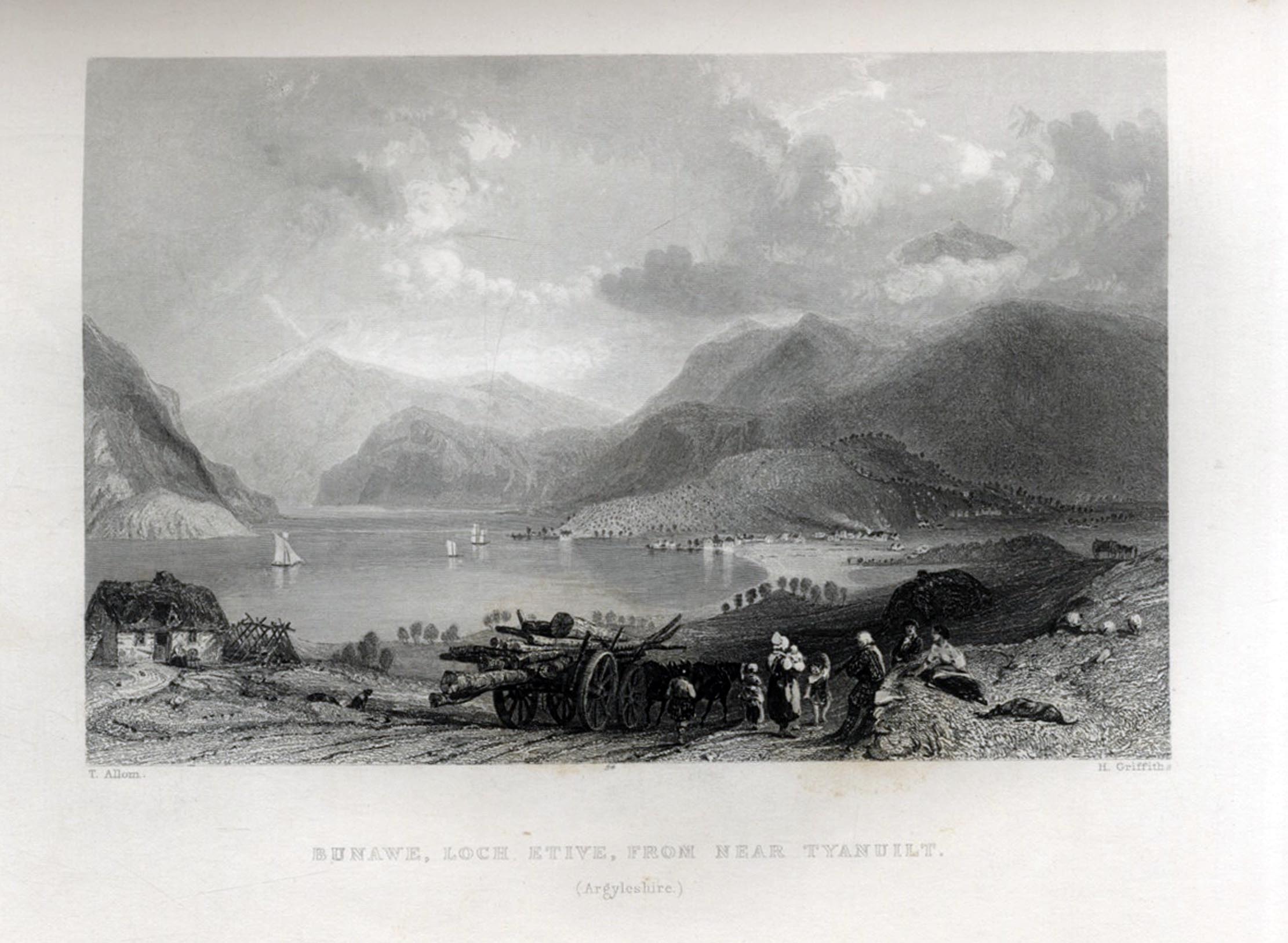 Row 1 The Eastern pass of Glenco ; Bunawe, Loch Etive, near Tyaniult ; Loch Creran with Bercaldine Castle ; The Sound of Kerrara Row 2 Oban during the Regatta ; Dunolly Castle near Oban ; Loch Awe ; the Pass of Awe Row 3 Kilchurn Castle. Loch Awe ; Kilchurn Castle Loch Awe ; Inverary Castle ; Loch Fine Row 4 Tarbert from Loch Fine looking west ; Glencoe between Loch Long and Cairn Dhu ; Vale of Glencoe ; the Head of Loch Lomond, looking Southern Screen Row 6 Loch Lomond ; Dunbarton Castle of the Clyde ; the Clyde with Dunbarton Castle in the distance ; New Bridge and Bromielaw, Glasgow Row 7 Port Glasgow ; Glasgow Cathedral ; The Roman Bridge over the Moose ; Corra Lynn on the Clyde Row 8 Stonebyres, third fall of the Clyde ; Cartlane Craigs Bridge