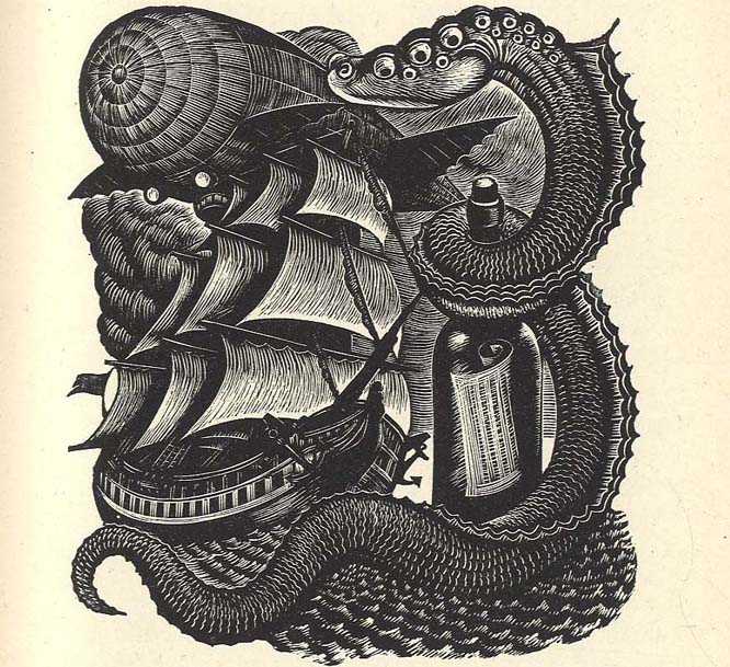 Fritz Eichenberg (1901 - 1990) Born in Cologne where he was apprenticed to a lithographic print shop and then worked in advertising> He also studied in Leipzig where he studied under the illustrator Hugo Steinerpark."He was not only interested in the illus- tration, but in the book as a whole - the design, the binding, the type - the illustrations were just a part of his work. He was the head designer for Ulstein Books, which are still beautiful. He did most of the bindings, and they were just marvelous. I began to illustrate books right away. I did Gulliver's Travels and Dostoevski, whom I always adored as an author. The first book was Crime and Punishment, and I did it while I was a student. Then came 1932 --- " He became staff artist for the Ultstein chain and was immediately successful, dictating his own projects. He was also active as a cartoonist, against violence and right wing extremism. In 1933 alarmed at the gathering power of the Nazis he amassed contracts for a tour out of Germany. "They did not want to let me go. In March of 1933, I had everything assembled. I had a big pack of contracts. I had one with Hopok, the shipping line which plied the ocean between Germany and the United States. There was some Ultstein paper in Cologne and some in my hometown for which I worked. I worked for about a half a dozen different newspapers and magazines. So it was comparatively easy. I had gotten myself a passport with a twelve months' visa which turned out to be my salvation. At the time, I didn't pay much attention to it. I left my family in Berlin and my daughter was two years old. I went to Mexico and Guatemala where I had always wanted to go and stayed for about three months writing articles and sending them back and getting them published. Then I went up North through San Antonio, up through Texas to Chicago where the World's Fair had just been opened." He returned to Germany, extricating his wife and daughter to settle permanently in America. ".... So when I got here, everyone was complaining and aching with fatigue from wandering around trying to get jobs. It was just a situation for an artist to come from another country and say, "Here I am, take note." No one knew me here. I took my portfolio and made the rounds. I had piles of work, as you can imagine. I had illustrated many books. It was in all the papers. I had a staggering amount of work, but it was alien kind of work that didn't apply to the local scene. There was no such thing as a political cartoon in this country. Herb Block and Fitzpatrick are all good people, but to me it always lacked bite. It was funny stuff, but it wasn't anything that Goya or Daumier would have approved of." He worked for the WPA."I got box wood, which is very hard to get -- the WPA had kind of a supply room and everything we needed. You had to say what you needed, and you got it. They bought the tools. They bought the gravers and they sharpened the gravers and you took your material home with you. You just picked it up there -- beautiful wood blocks, any size. I made a decided assignment of each one. I said to myself, "I will do this and in that time." I don't know what the other artists actually did. " Oral history interview with Fritz Eichenberg, 1979 May 14-Dec. 7, Archives of American Art, Smithsonian Institution. |