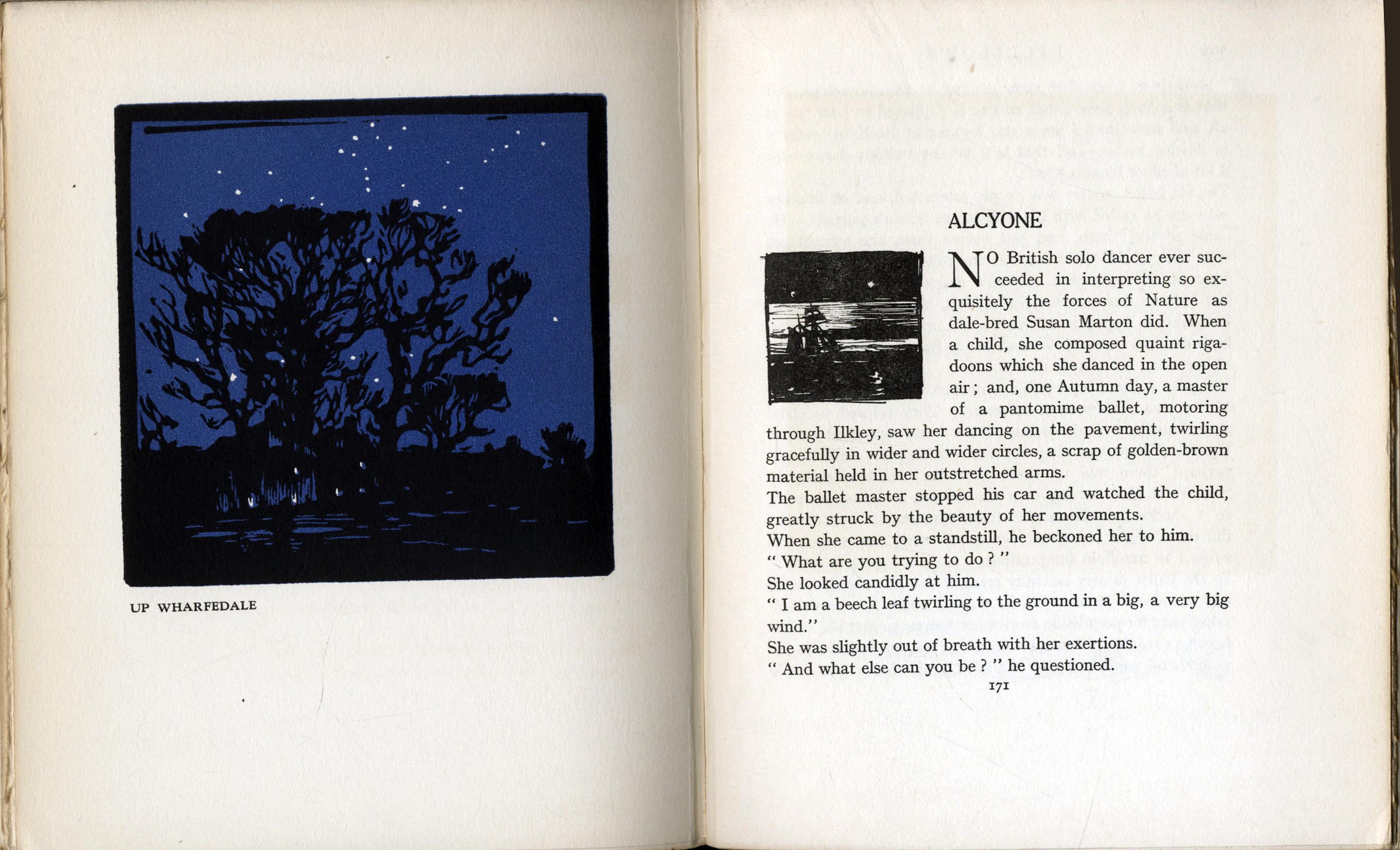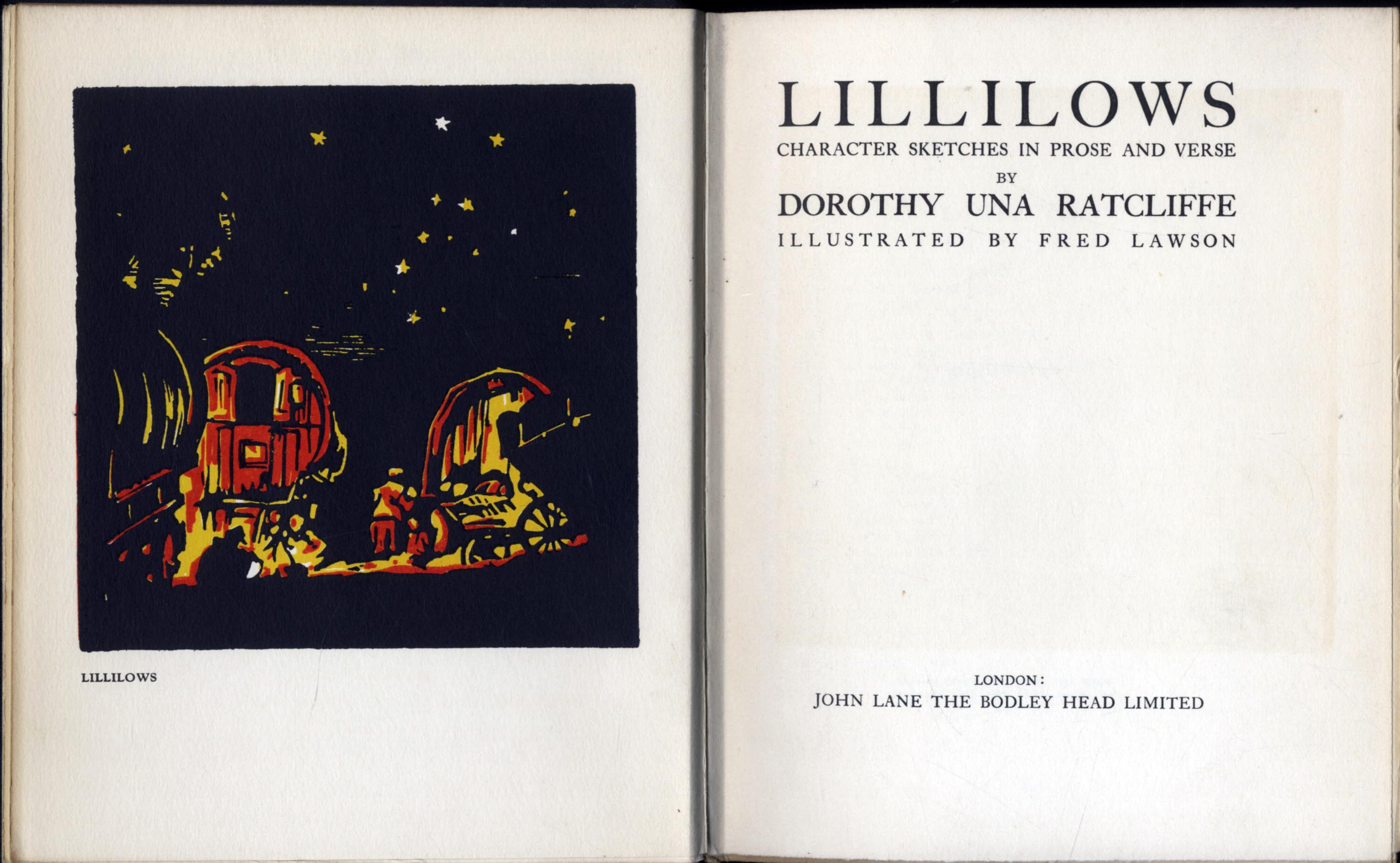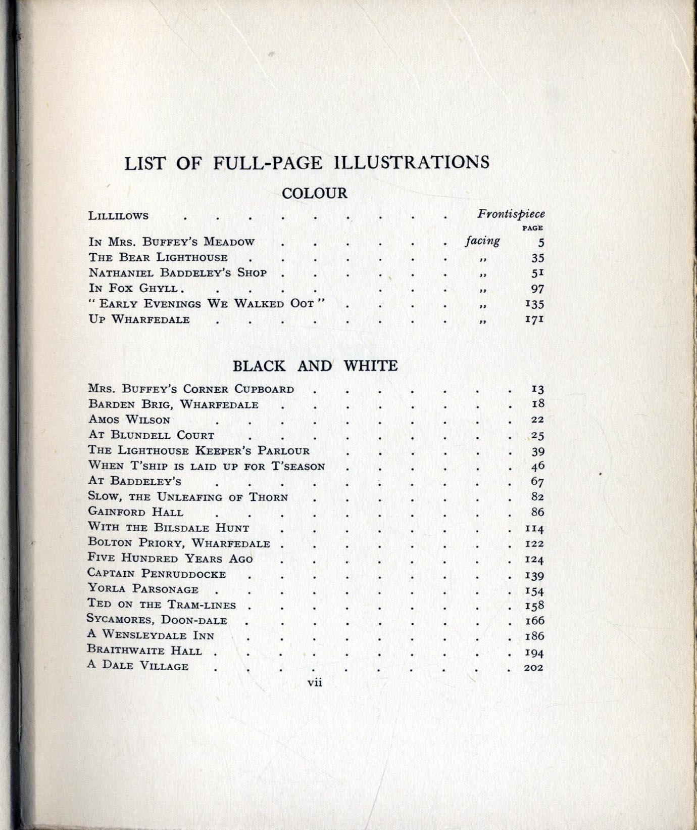 | Fred Lawson (1888-1968) trained at Dewsbury, then Leeds and the Royal College in London. In 1911 he took a holiday in Wensleydale and lived at Castle Bolton for the rest of his life. His house is now available as a holiday let. His daughter is Sonia Lawson R.A. He was active as an illustrator and writer for The Dalesman magazine, and painted more on the Continent than many suppose .Although some of his penwork for Lillilows can lack conviction, even look hurried, his two colour images have verve and close observation. The binding of the book is unusual and counter to the culture of the contents, with its Vorticist motif on the spine. The construction of the lettering on the front is ingenious and unlike anything else I have seen. But then it is Bodley Head book. |