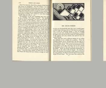 | Very little is known about Claire Oldham other than the titles she illustrated which, of course included an edition of Gilbert White of Selbourne. Her direct even cheeky tail and head pieces here are worthy of a secong glance, ingenious solutions to slippery concepts not susceptible to visualisation. The Grand Passion concoction is terrific as are her Parking Meter Buttons. |
