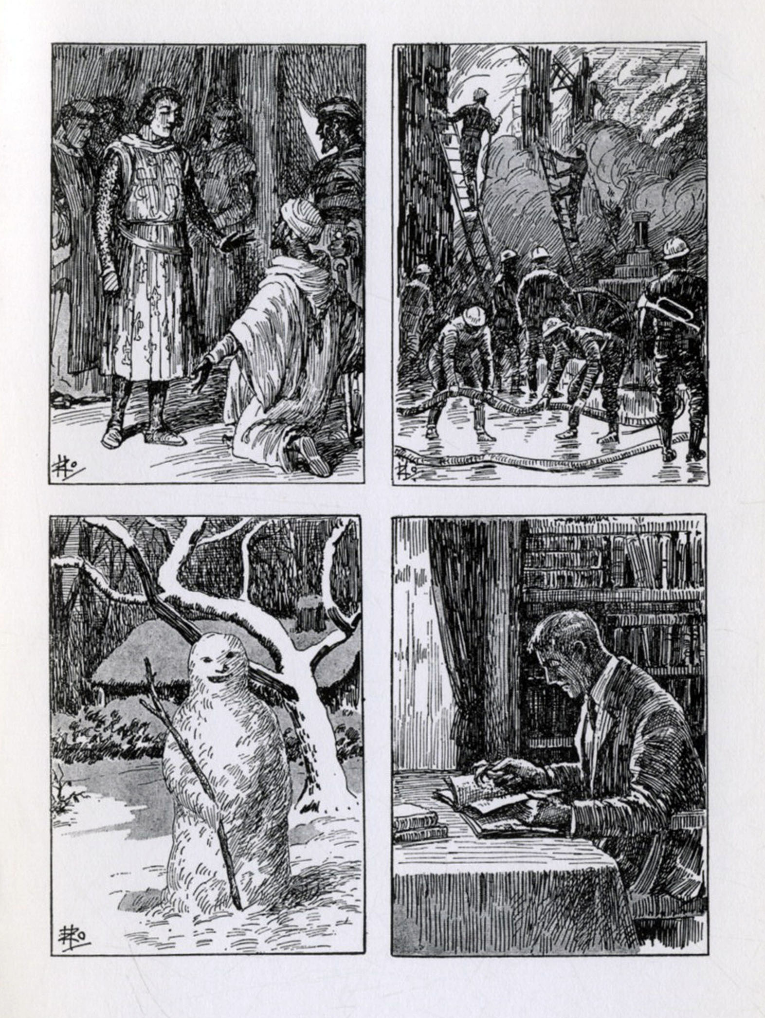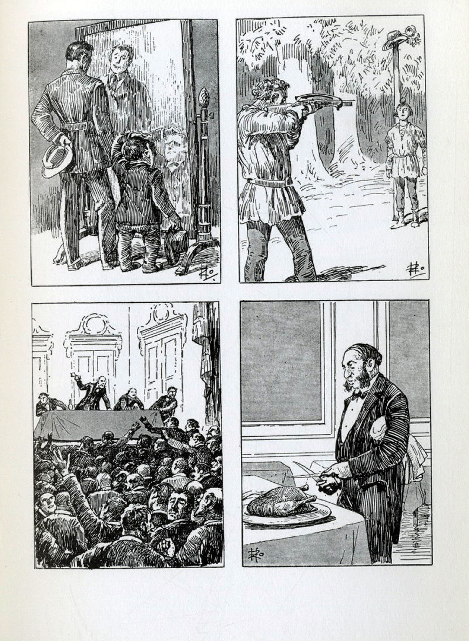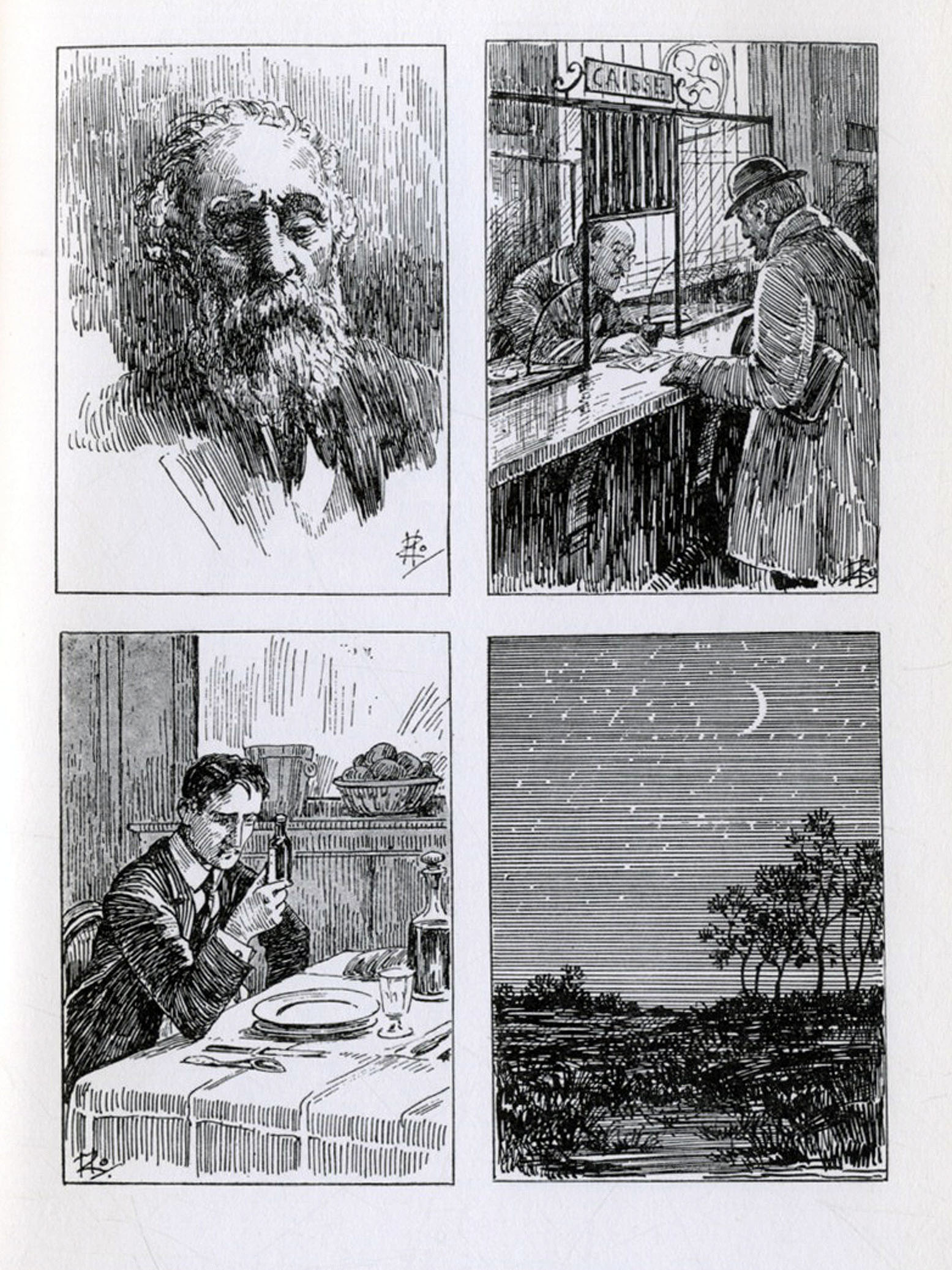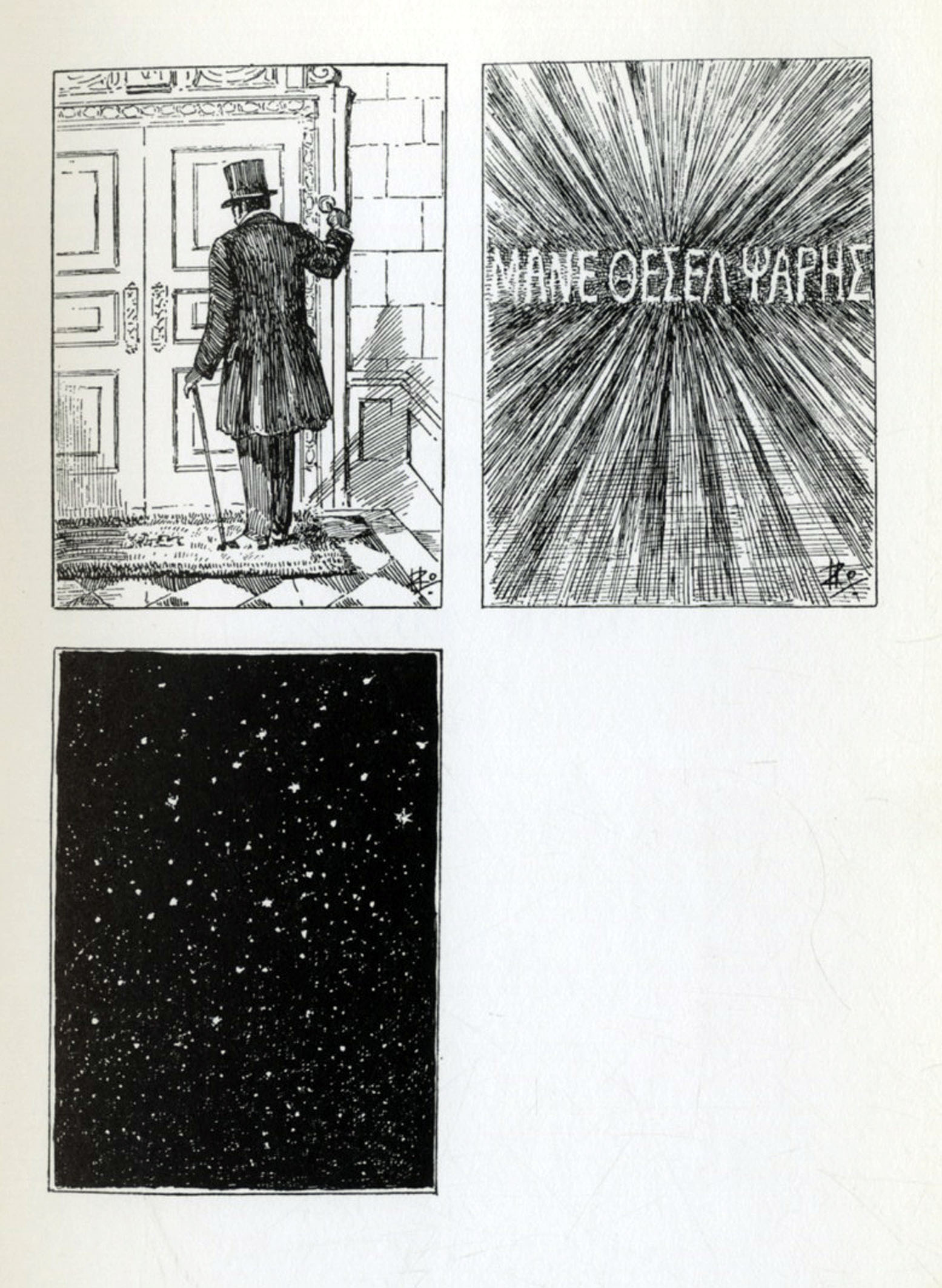 Raymond Roussel had decided to add illustrations to Nouvelles Impressions d'Afrique (1932) , and through the efforts of the GORON Detective Agency, contacted the artist and illustrator Henri Zo (1873 - 1933) best known for dramatic scenes of bullfighting in oils, and for illustrating Pierre Loti's Ramuntcho of 1923. The author briefed artist over the 'phone with generalised descriptions of scenes he wished visualised, and accepted without further intervention, the drawings he received. e.g. "... a restaurant waiter holding two knives forming a cross..." "A parrot on its perch seeming to talk to a passer by. No other people." "A section of starry sky without any earthly landscape as if seen from some vantage point in space and giving the impression of infinity." Ford 200-1 Zo responded respectfully but was professionally wounded when he received his complementary copies, " These are not the drawings I would have produced had I known that I was illustrating Raymond Roussel... my drawings are lacking in Liberty and Fancy. Even the technique since the dryness of pen and ink drawings does not match the abundance and tumult of your verses." Caradec pp308-9. The American novelist Gilbert Sorrentino (1929-2006) paid a tribute to the visual quality Zo infused into Roussel's book." Under the Shadow has a structure based upon the drawings done for Raymond Roussel's Nouvelles Impressions D'Afrique by H. A. Zo, drawings that, incidentally, have nothing to do with the text, but which, oddly enough, make a text of their own, a fragmented and discontinuous one, but a text nonetheless. Under the Shadow is Zo's "story" as it can be pulled out of his pedestrian but really haunting drawings." Interview with Alexander Laurence in 1994.