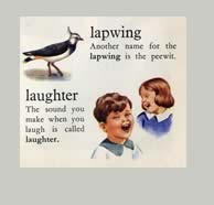 I have often found it difficult to spell out a personal delight in the dead surface, in the slate qualities of flesh, in faces caught in a disconnected rictus of glee.Think of Magritte's paintings of clay people in landscapes, and the regular features in the Strand magazines of Vegetables that look like household objects or familiar relatives. There is much illustration that is generally disregarded which captures exactly this dead quality. It is a natural response and a natural corrective to all the fake lushness of Matisse and the Cult of the Mediterranean. Against the garish gleam of Cannes let us set here the stolid patina of the Home Counties. Laughing at Lapwings. |
