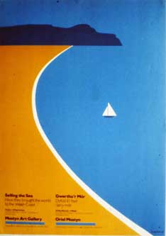 LLANDUDNO Selling the Sea This was an exhibition of railway posters I was involved in with Jeremy Theophilus for the Llandudno Museum. Jeremy thought it a great idea to commission Tom to do a poster for the show. The one major institution who promised the majority of railway posters for the show suddenly sprung a bill on us for several thousands of pounds to line the backs of our choice of posters with canvas. With only weeks to go, Jeremy filled the Gallery with huge photographic blow-ups of postcards sent by holiday makers from Llandudno. For me, the poster shown above recalls experiences of huge ingenuity by Jeremy and our rage at the duplicity that lenders to exhibitions could demonstrate. In his studio Tom showed me how this design developed, from a sketch on the back of an envelope, coloured in pencil. "I started with a bucket and spade in a landscape. And then tried a direct reference to the town which I had known as a child on holiday.We would go to Llandudno every year. It fell into a sort of routine. The Sabbath was the Sabbath, We would go for walks around the Great Orme. Then we'd go to the Methodist Church, and there was a Band in the evening. There was The Happy Valley, the Minstrels. The Punch and Judy Man. There was a lake where boys like me sailed their yachts. I was reading this book the other day where Picasso and Braque contributed essays to studies of creativity, mentioning the need to recognise extemporization. I always get ideas, but never in the way you'd think. I first visualised the profile of the Great Orme, but then tried and tried and nearly gave up. I was getting desperate. I played around with the proportions. Then something happened - I can't remember exactly what - and the whole thing came to life. In this book I read that if it always came out the way you intended there was probably no point in doing it. Typical Picasso this observation."