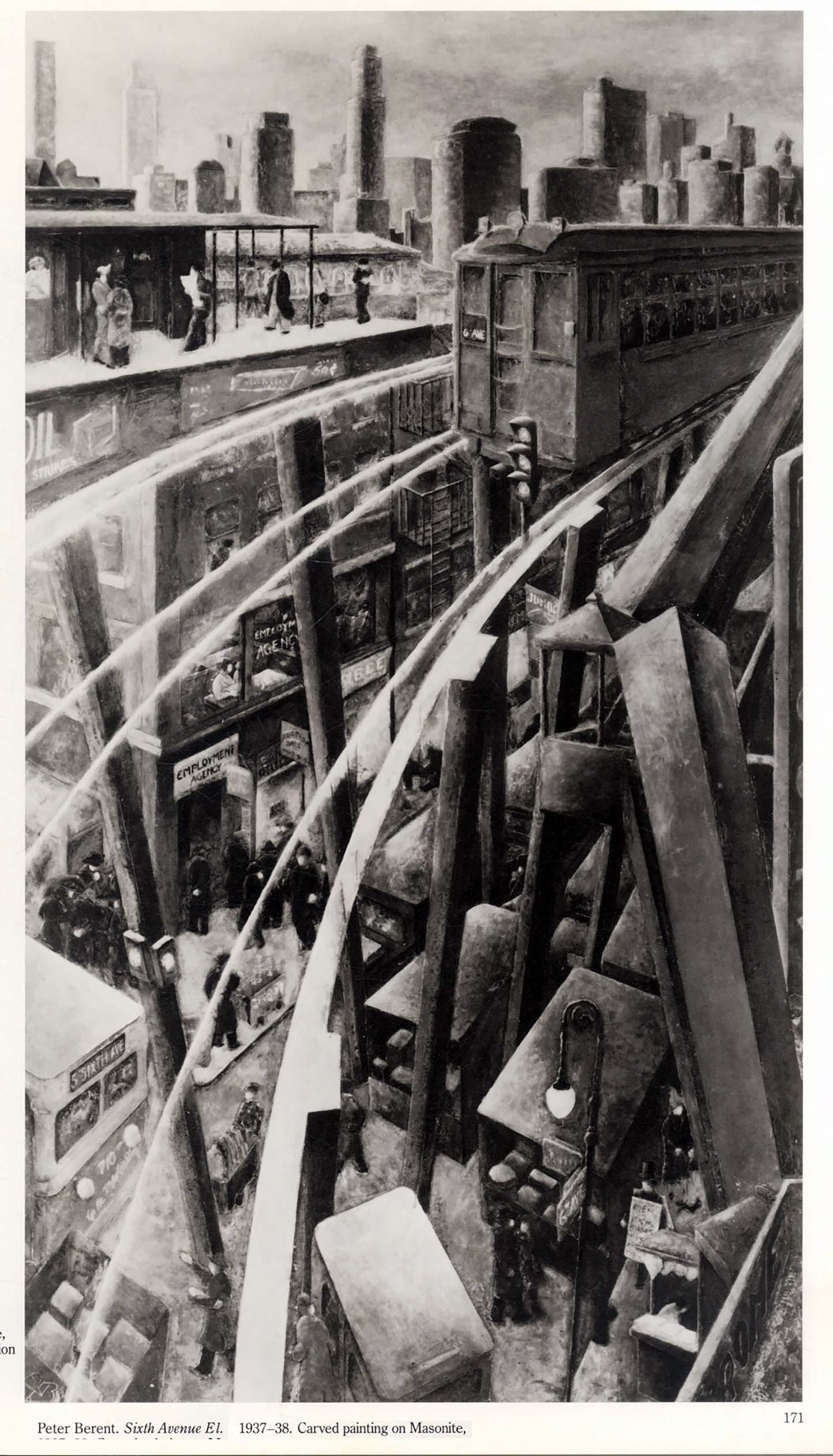 Sheeler painting Church Street El; George Grosz, Memories of New York