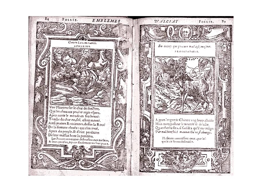 ALCIATI FRENCH EDITION ALCIATI GERMAN EDITION, Andrea Alciatus, Embelatum , printed in German by Wechel in Paris, 1542. |