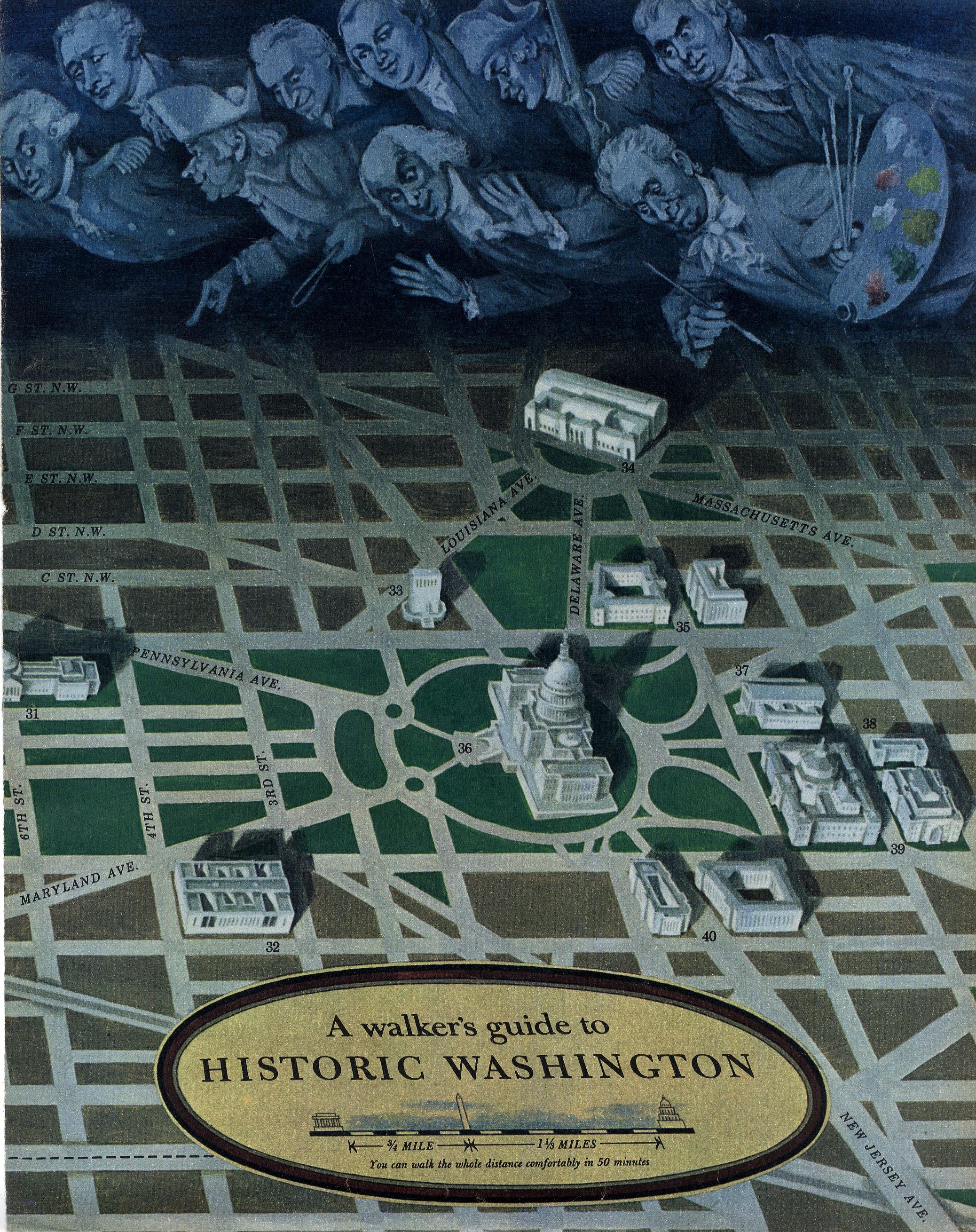 A map across three pages with a fourth as a key. Joe Kaufman shows his skills and compositional flair - prolific and particularly known as an illustrator for children of books about the everyday world.