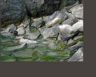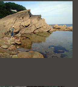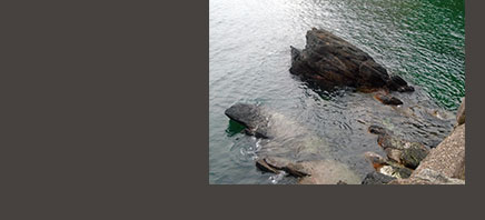 You turn right at the T junction with your first sight of the sea and plunge down into a wooded cleft with five hairpin bends. Straight ahead of you is a signpost with Iceland and New Zealand on it, and a house straight ahead called TREES. Last hairpin to the left, the cluster of eight self catering units, separate buildings and the main property with five units is signed and there is a communal parking area before the main house. The shoreline is now in earshot with a huge view of distant promontories. Ten minutes walk from the house down through densely wooded steep slopes, you can see the rocky foreshore and an old lime kiln with a domed inset space giving shelter. A couple had spent the weekend there with duvet, towels and bags of food. The Bay is actually narrow. The tide was out. No sand here but boulders and damp slabs of flat stone. A waterfall spills down through the trees and trickled onto the beach. But where is the Pool? One of the ten best natural foreshore pools in the UK according to the Telegraph? While being watched by the campers and an another couple of young folk who had just arrived from Bathl, I teetered my way down to the waves and headed towards a natural barrier of sharp pitted rock. And there it was. Filled by the tide every day and a perfect container for clear cold water. Looking closely there was distinct evidence of the shaping of the containing walls for parents to sit on while tots safely splashed and tumbled. At one extremity of the bay was a stretch of shaped rock approximating to a solid pontoon. At one stage in the late nineteenth century an entrepreneur had invested in this unspoilt cleft of rock, building a Hotel and extensive Carriage Drive, with the beginnings of a leisure complex to be serviced by a branch of the railway (it never came) and a regular service from paddle steamers (they were not to appear). The Pool was the last clear remains of this grandiloquence whose edges had been blurred by the sea. Looking back the campers had placed their towel over a descending wall to dry. It reminded me of conventional motifs in nineteenth century landscape paintings where a small colour note (here red) was located in the middle distance. Like a gipsy’s waistcoat. I thanked the couple for adding to the picturesque lure of my snaps. The girl asked me to explain in detail Repoussoirs, foils and the 'privileged view'. “How fascinating,” she said. The Pool was a formal perfection, still among the waves, clear and harbouring no anxious poisonous molluscs. It ratified my constant fantasies of the mirrored depths of the Rock Pool as a motif of the imagination.
