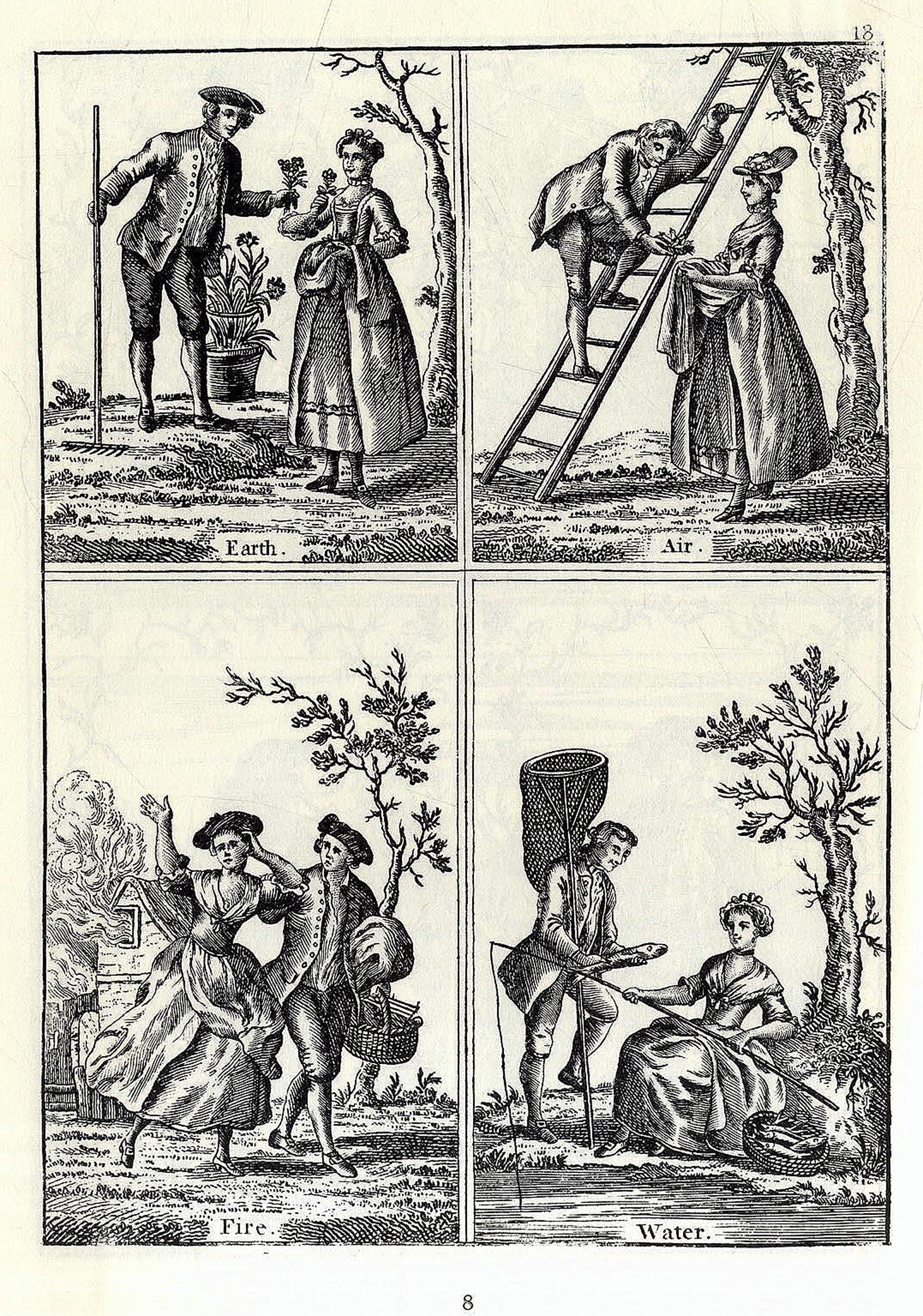 Four Elements ; Fire, Earth, Water and Air, English Popular Print of courtship.