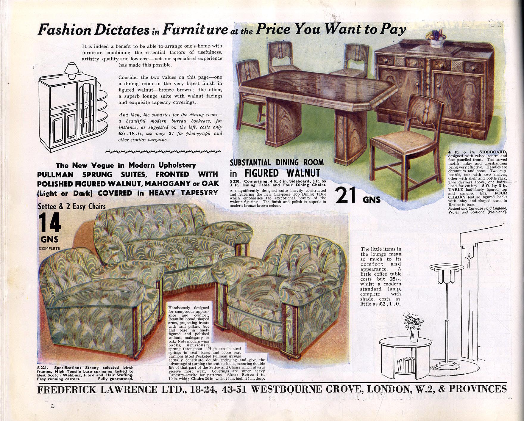 The Chairman of the Company was Frederick Lawrence (ne Isaacs) knighted in 1963, politician and businessman. In 1914 he enlisted and fought with Allenby in the Middle East, entering Jerusalem as a dispatch rider. He went on to be Mayor of Paddington and was knighted in 1963. The Furniture Store was acquired for other purposes in 1974 when the firm must have been defunct. Lawrence died in 1981 |